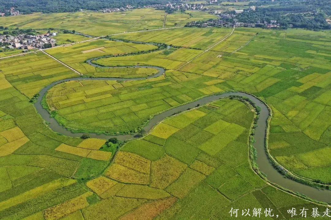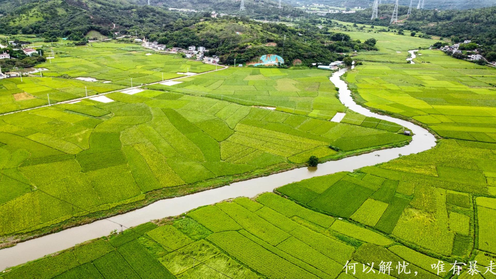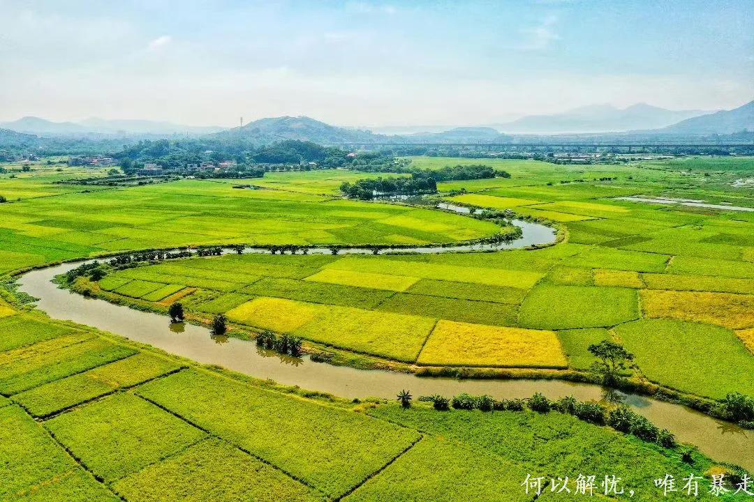 【金秋稻穗景美如画】金秋时节,惠东县稔山镇的晚稻进入了成熟季。在稔山镇竹园村、竹背村、水围村等村落,金黄的稻穗压弯了“腰”,一层层稻浪伴随着海边吹来的风层起翻腾,从空中俯瞰,金黄色的稻田与蔚蓝的海洋相接,田间有蜿蜒的小溪环绕,远远近近,到处是一派美丽乡村丰收景象。