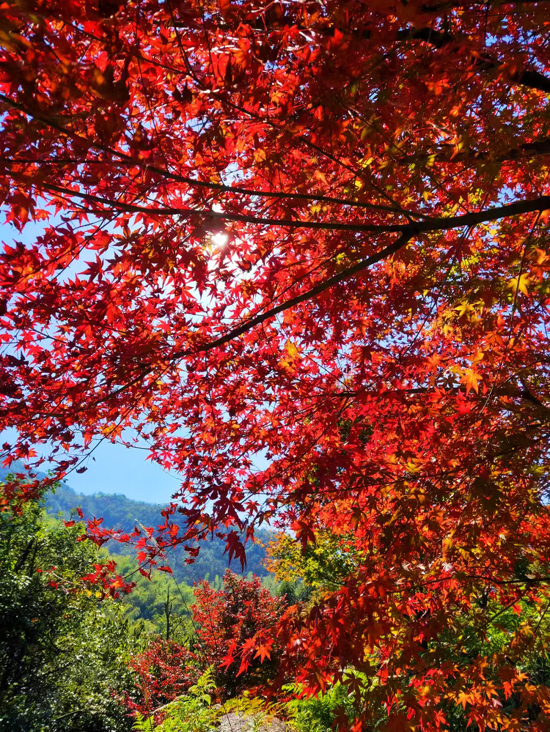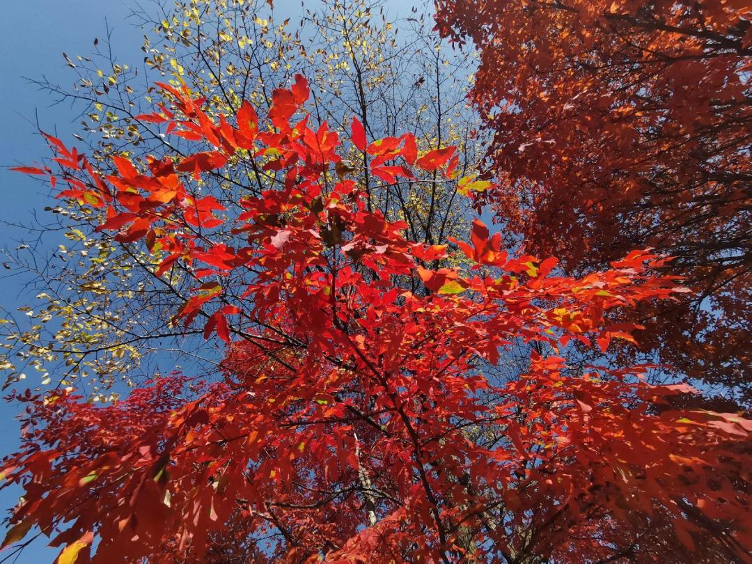 抬眼望去,层层叠叠的枫叶红得浓烈