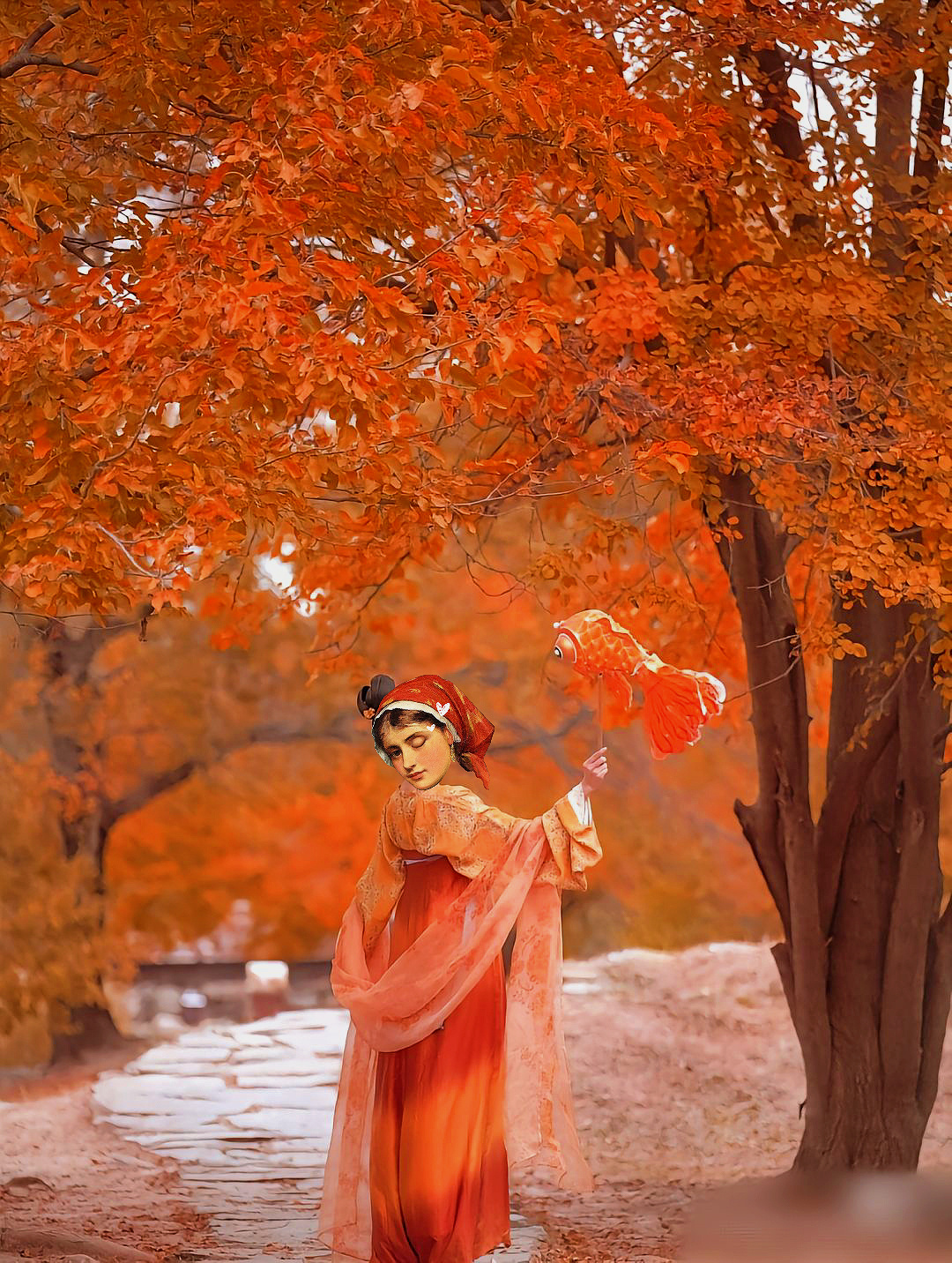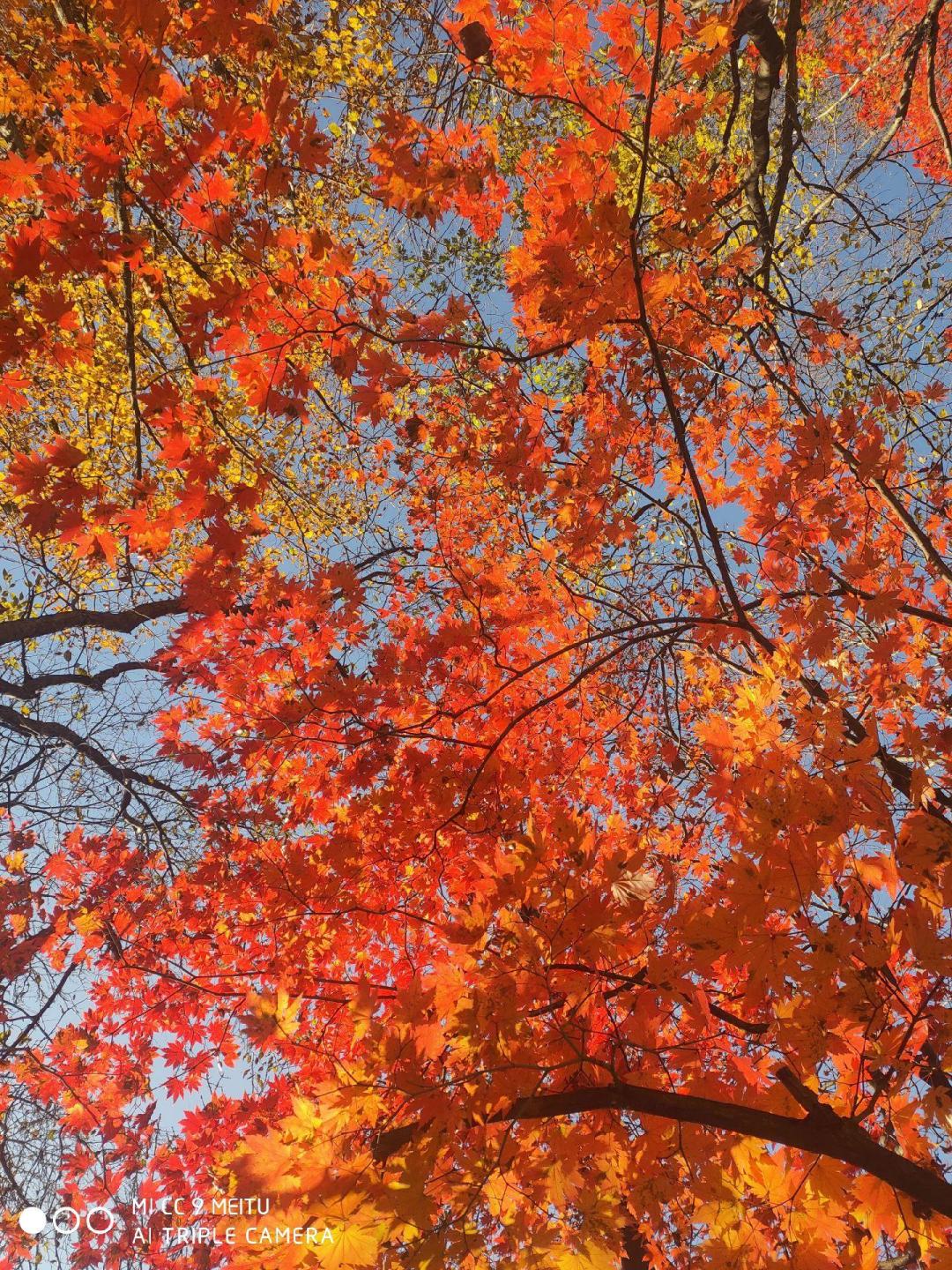 踏着脚下枫叶铺满的“红地毯”