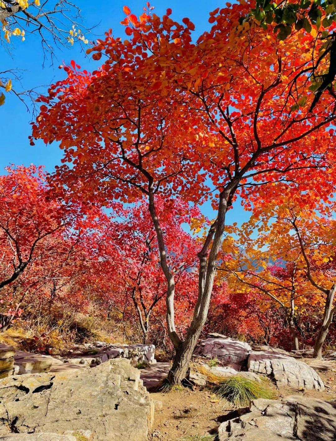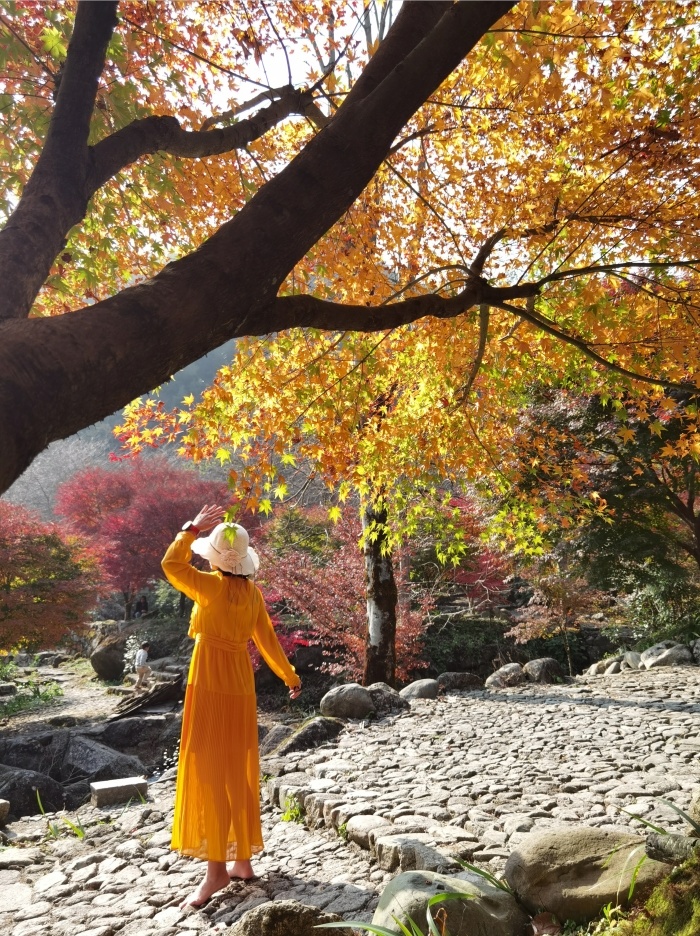 亮点2:秋冬双景同赏:一次性打卡 “十万株枫叶林” 的浓烈火红与 “中国银杏第一村” 的静谧金黄,两种高饱和度的自然景观形成鲜明对比,出片效果极佳。