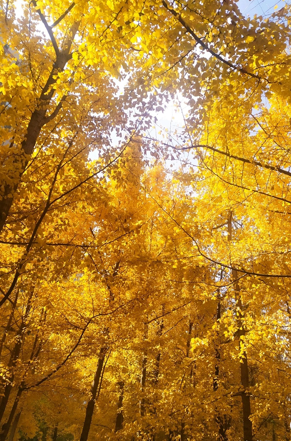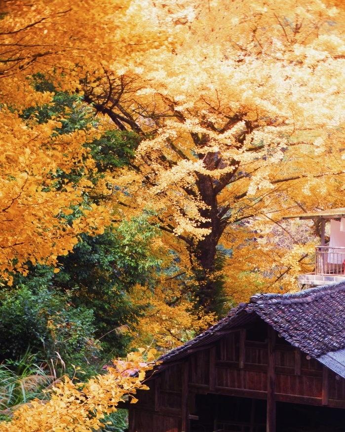 有人说,一个把黄色都用尽了的小村庄,是个浪漫的地方!能想到的最浪漫的事,就是坐在这里的摇椅上,和你看着漫天飞舞的金黄,慢慢地摇;想做的最浪漫的事之一,就是被你牵着手,旁若无人地走在金色堆砌的魔毯上,留下只属于我们的“银杏树之恋”!