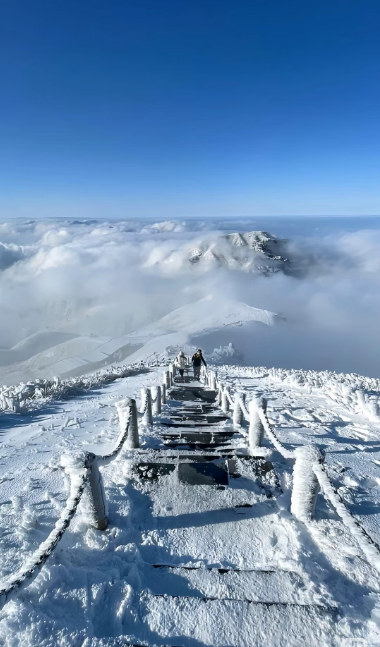 从山脚的云雾缭绕,到山顶的仙气缥缈