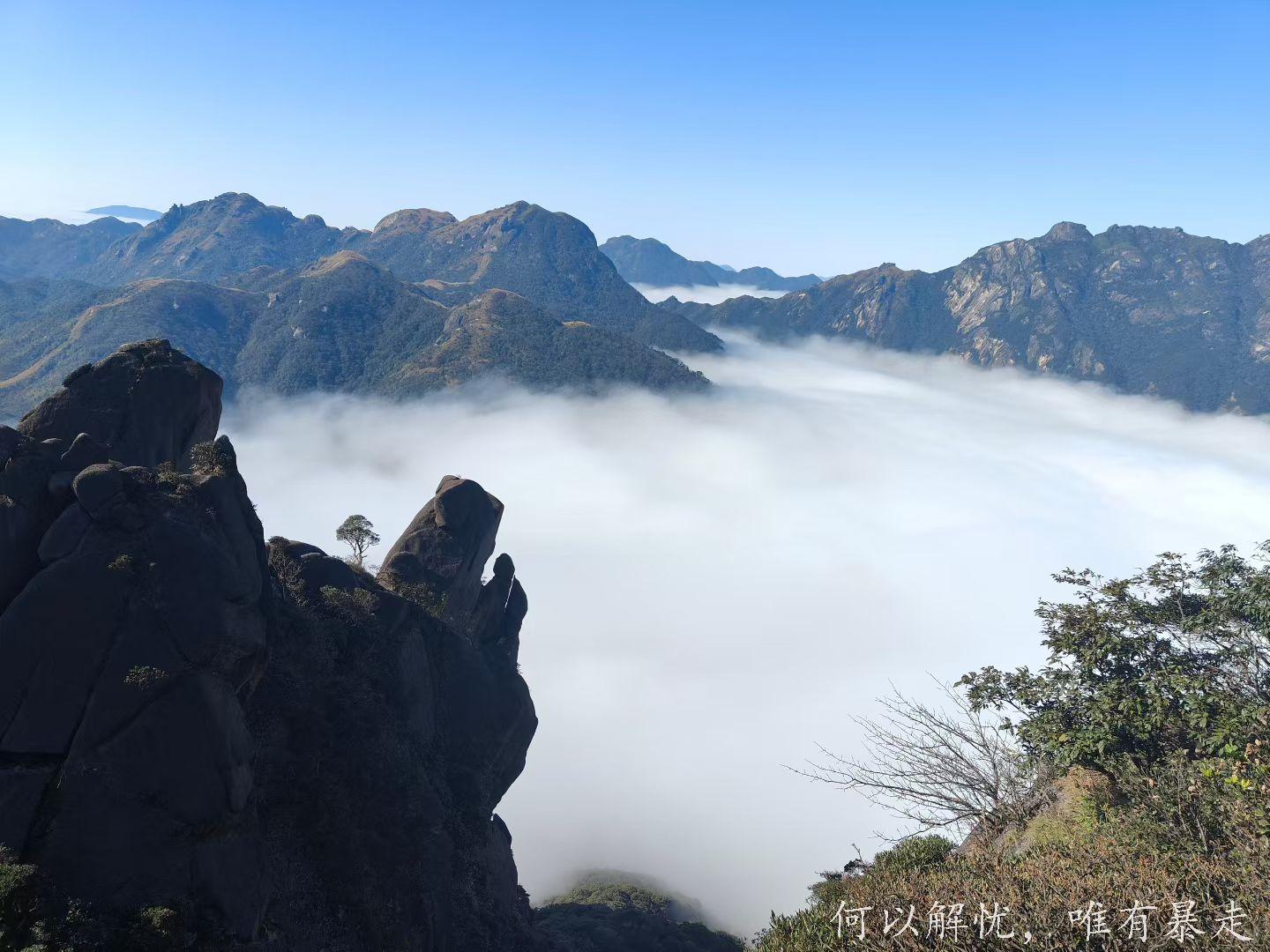 08:00 到达香炉石顶看日出云海,拍照远看三分石,稍作休息后徒步下山