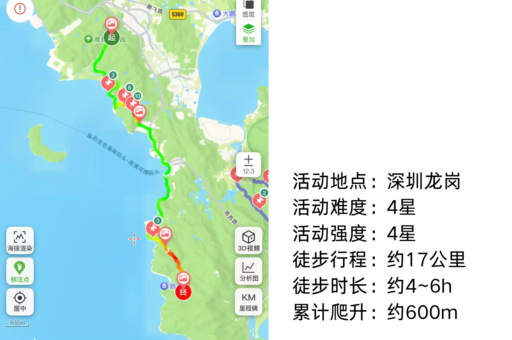 全程约17公里,累计爬升600米,走完全程大约需要5小时