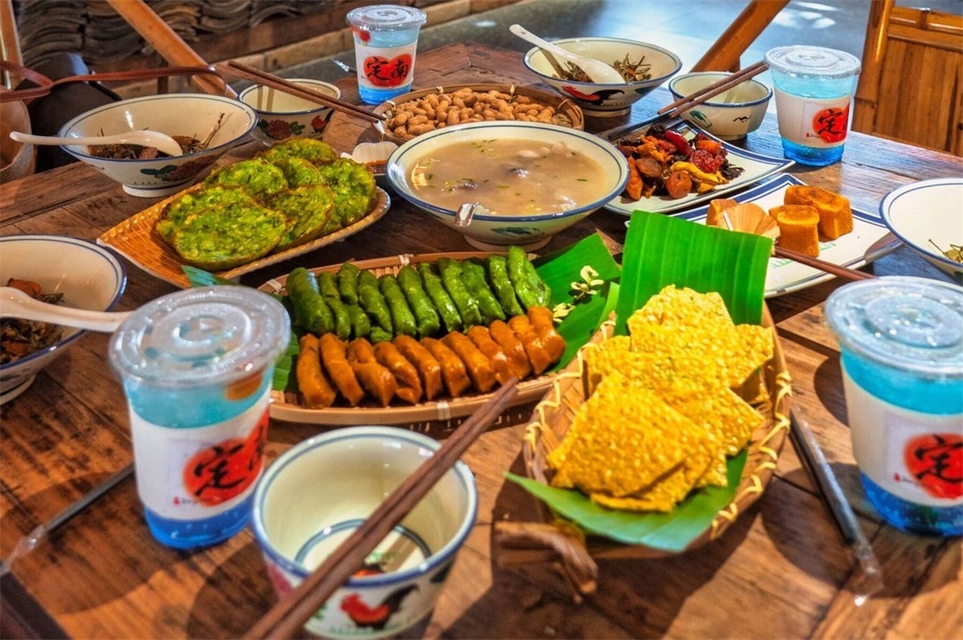 亮点4、赣州美食灰水粄(百年非遗小吃,软糯Q弹)、铁勺粄(现炸金黄酥脆)、鹅公鱼饺(纯手工制作鲜到掉眉毛)、张凌赫同款客家炒花生、白宇同款绿豆沙。