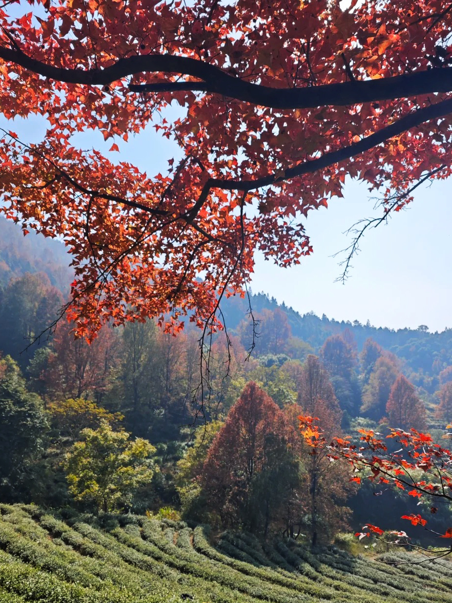 11:00 陆续到达【“无量山”红枫茶园】,上百株枫树点缀在茶园之间,黄绿、金黄、橘黄、火红、紫红,层林尽染,与云南无量山的樱花茶园相媲美。漫步其间,随手成片;或是沏一壶好茶,慵懒地欣赏风景。这里生态原始,没有餐厅饭店,小伙伴记得提前备好干粮哦。也可以帮采茶工人除草,用劳动换工作餐