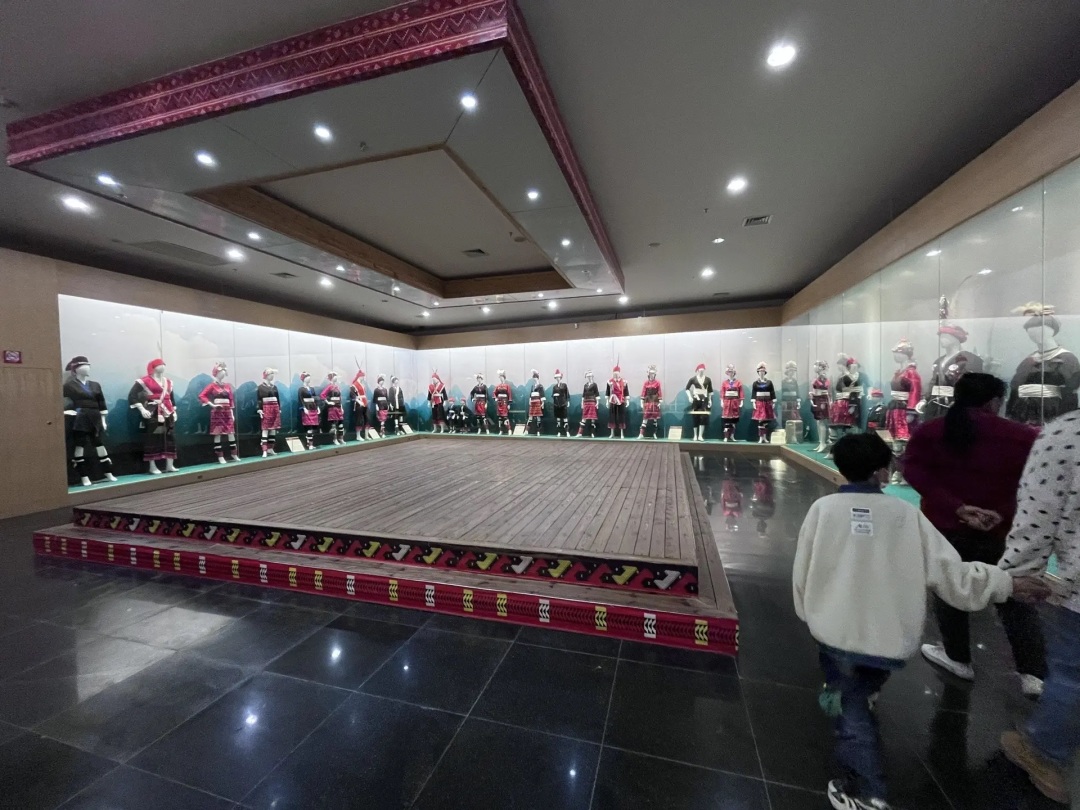 该展厅通过瑶语、瑶文、女书、多种建筑形式、多彩多样的瑶族各支系纺织刺绣印染品、国内外各支系特色服装、饮食、医药来展示其独特文化;通过多形式的工艺、非物质文化文化遗产、瑶族歌舞等展示其精湛的艺术;通过神话传说、节庆活动、婚姻生育、丧俗葬礼等来展示其独具一格的民俗;通过多元图腾、多种宗教仪式和宗教道具来展示其独有魅力的宗教信仰