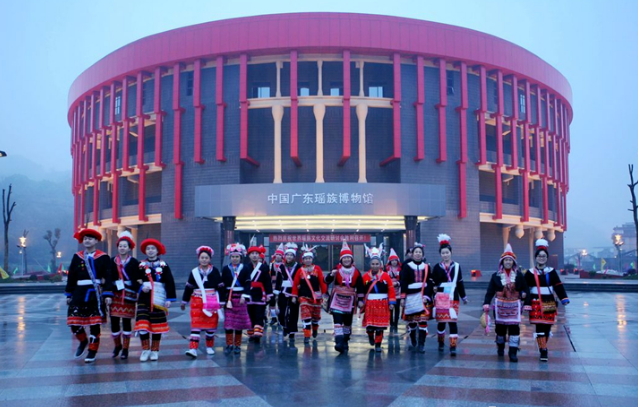 11:30出发前往连南县城,自由用餐,餐后随着领队一起前往 【广东瑶族博物馆】,参观博物馆外观设计新颖,雄壮的外观融入了瑶族红头巾、吊脚楼、长鼓等瑶族文化元素,以红黑两色为主调,整个外观绚丽典雅而庄重,寓意瑶族文化的绚丽多彩和瑶族人民的历久不衰、坚韧不拔的精神;
