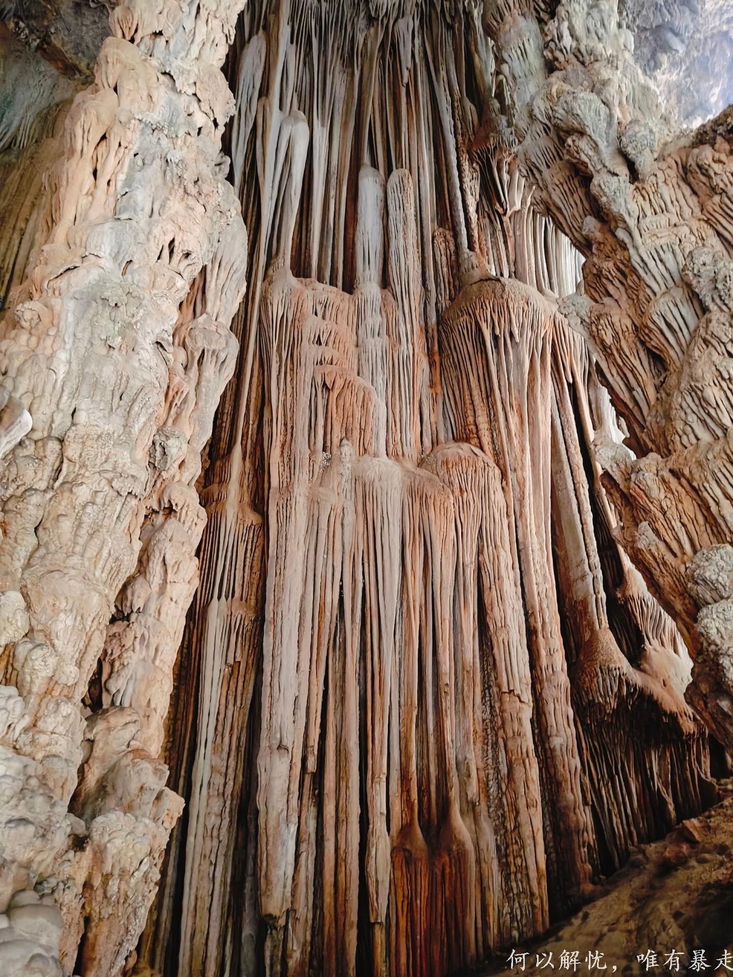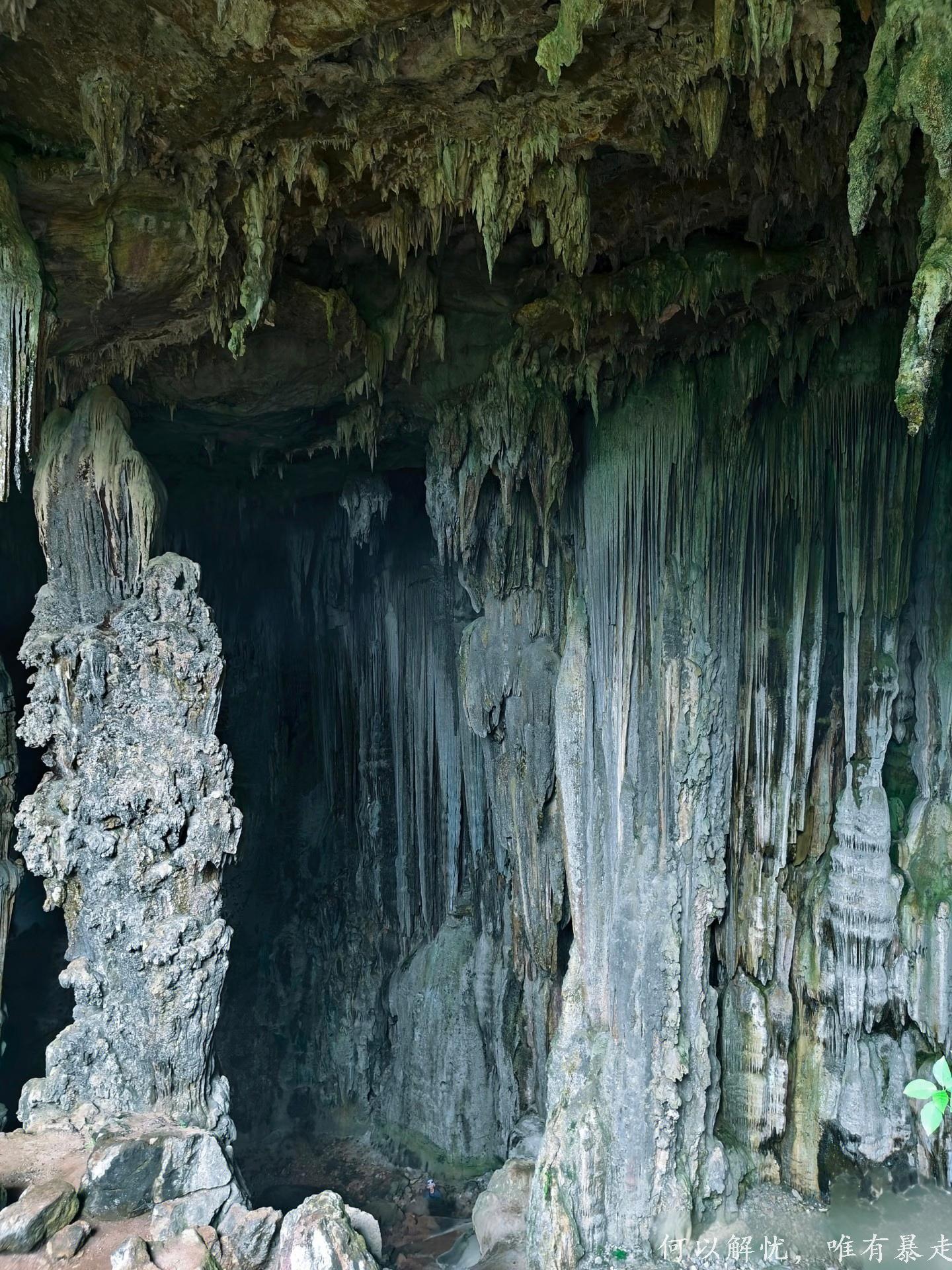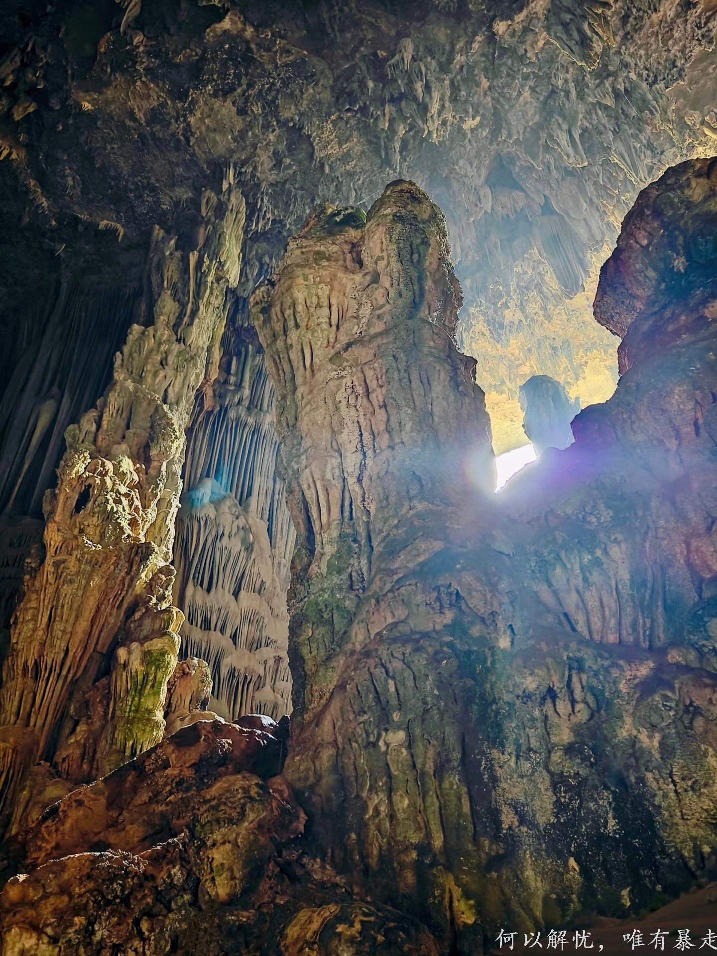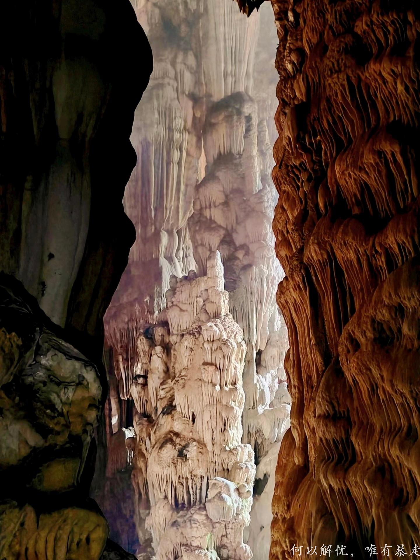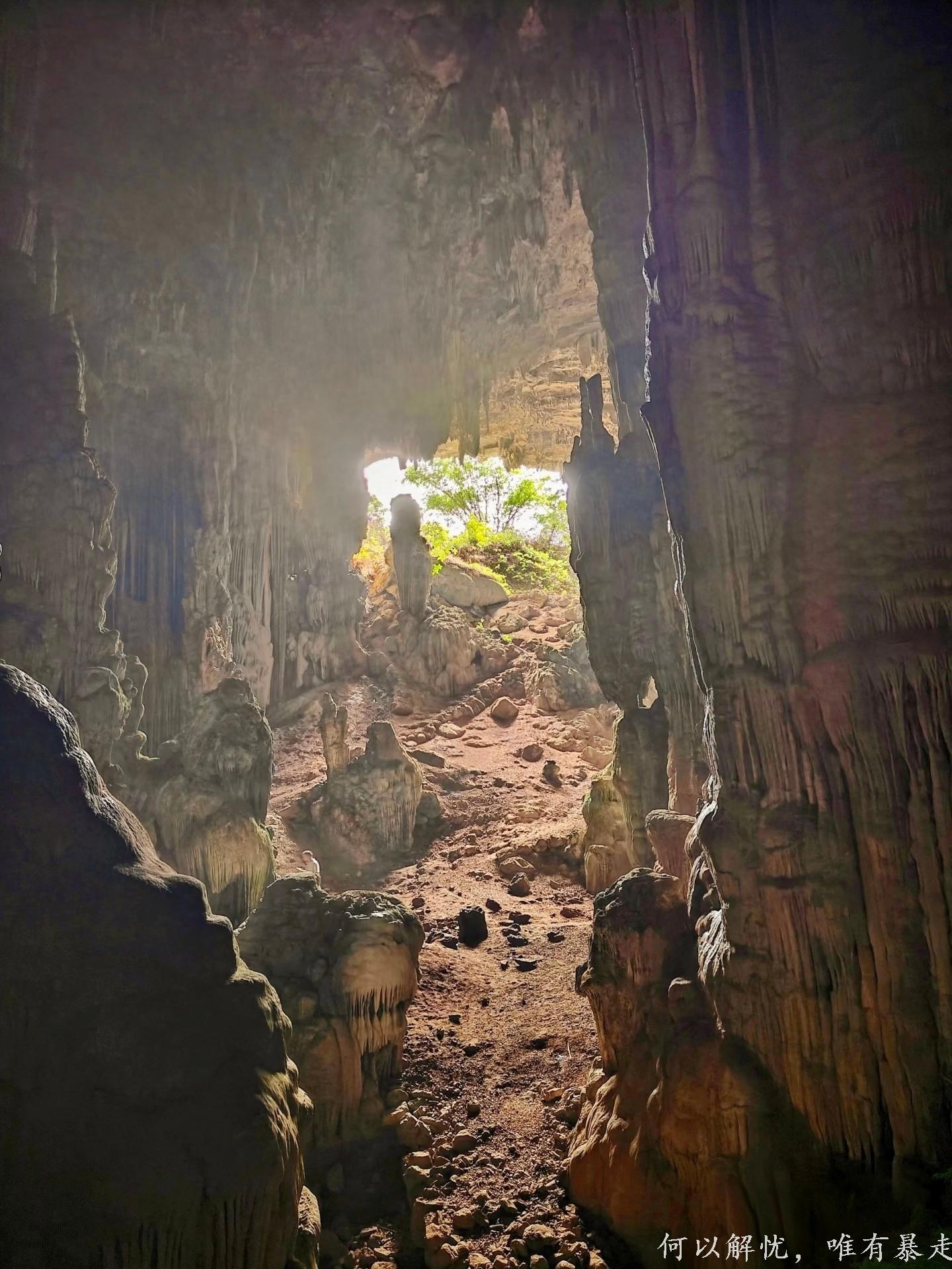 亮点3:黄沙坑村的仙人洞,真有种闯进“盗墓笔记”世界的刺激感,一进洞,我直接被震撼到说不出话。洞厅大得离谱,阳光从洞口透进来,打在奇形怪状的钟乳石上,整个地方就跟仙境似的,闪着梦幻光芒。有的钟乳石像顶天立地的大柱子,有的像破土而出的竹笋,还有的像随风飘动的纱幔,真的不得不服大自然这位“顶级艺术家” 。