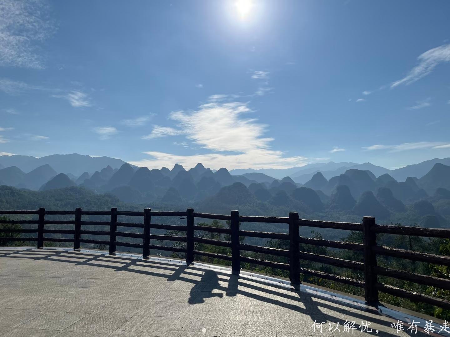亮点6:广东连南万山朝王国家石漠公园,位于粤、湘、桂三省的交界地,公园内有石山数百座,每座石山背朝东北,面向西南,组成群山俯首,犹如朝拜,恭躬油岭“盘王山”称臣的壮观画面,故称“万山朝王”。