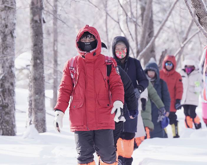 1、在积雪较厚的户外进行活动时,请一定听从领队的安排,不要擅自离队或到一些不清楚状况的区域拍照,以免发生意外,在山里有很多地方积雪可以达到2米深,所以没有脚印的地方尽量不要踩,很容易陷进雪坑,就像沼泽一样进去就不一定能出来了,进行有一定风险的活动时(如:冰上项目、滑雪等),一定要听从领队和教练的指导。