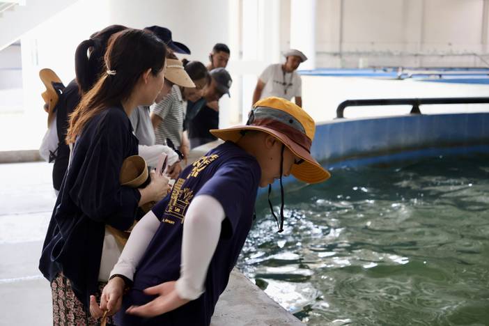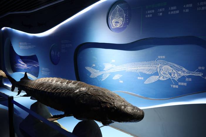 接下来,我们走进中华鲟保育中心,在这里,透过观察池看它们优雅的身姿,听研究员讲述“水中大熊猫”保护的故事。