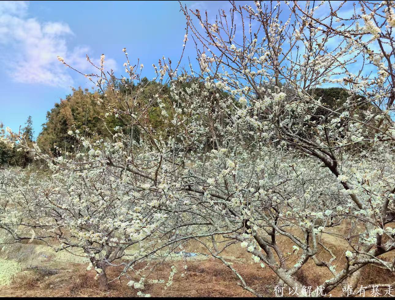 还有让大家慕名而来的李树,漫山遍野“白雪”皑皑,弥漫着初春李花的芬芳。让人仿若置身白雪世界。清风拂过,带着李花的芬芳和竹子的清香,沁人心脾。