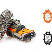 户外冰爪24齿不锈钢雪地防滑雪爪攀岩双链钢钉绑带