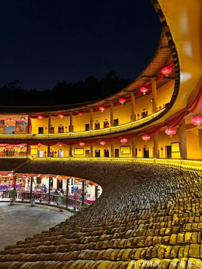 16:00上车前往中山客家土楼,欣赏土楼晚上的夜景,拍照打卡人,组队AA吃饭,中山乳鸽最出名。