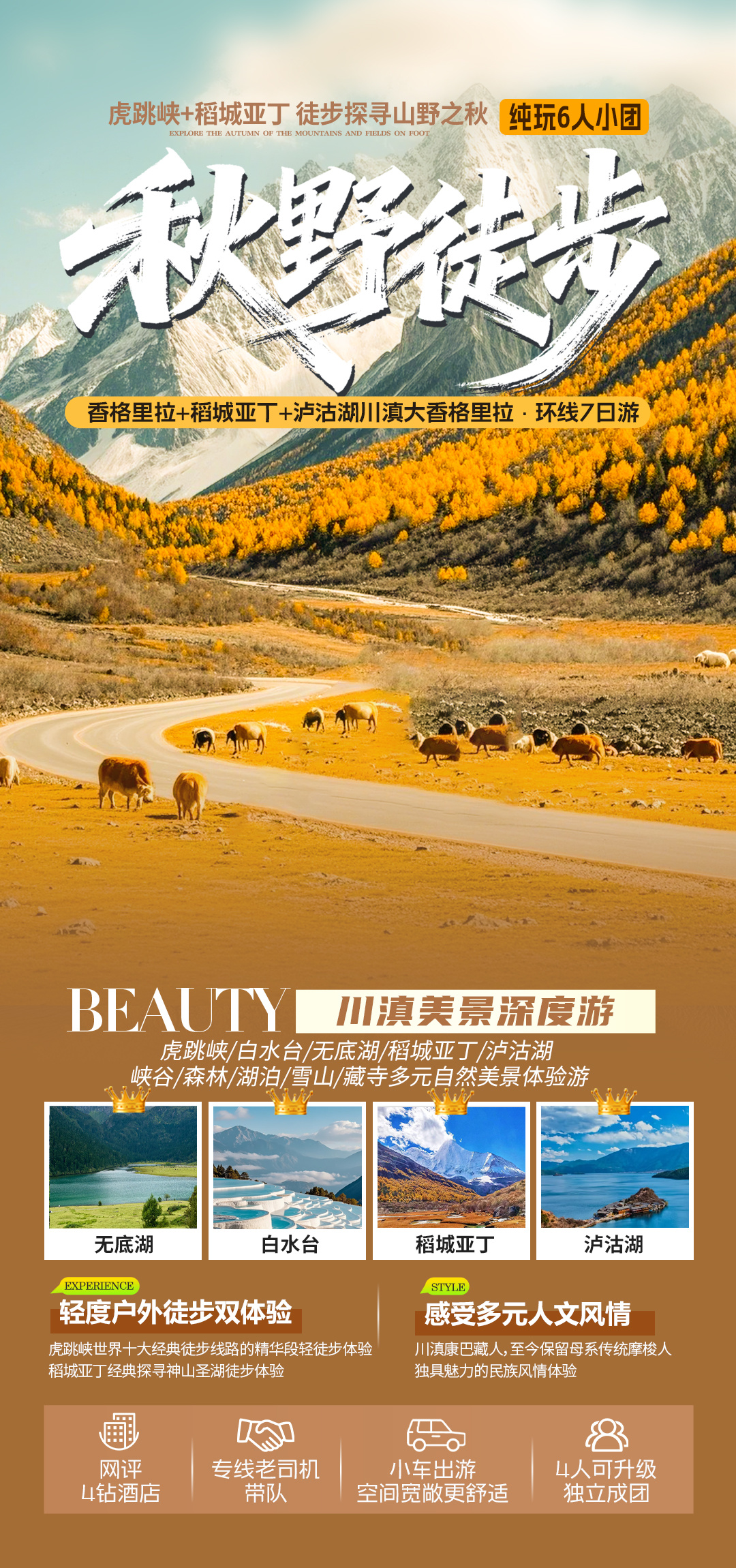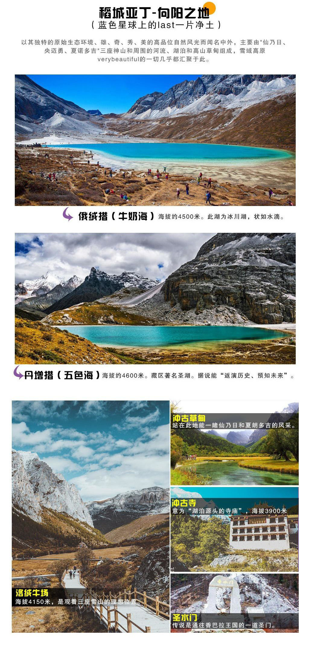 5、 行程中未含景区小交通:亚丁景区冲古寺服务站至洛绒牛场往返电瓶费:80元/人