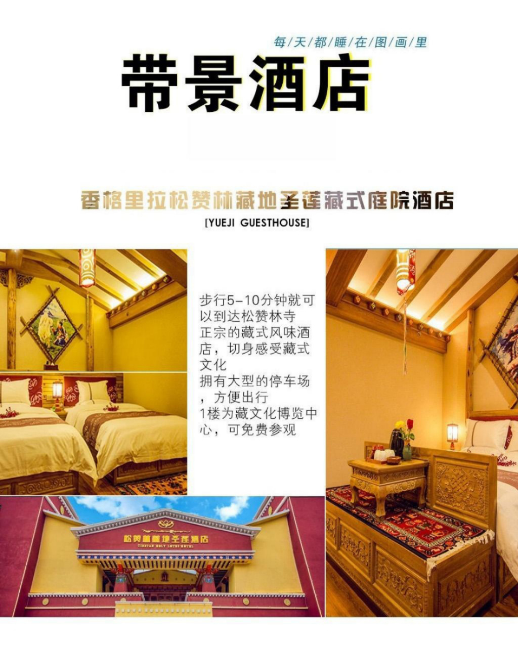 第五颗陨石·紫微酒店/松赞林藏地圣莲藏式庭院酒店/香格里拉藏胞之家酒店/丽呈睿轩酒店(香格里拉独克宗古城店)/香格里拉浩枫温德姆酒店或其他同级酒店。