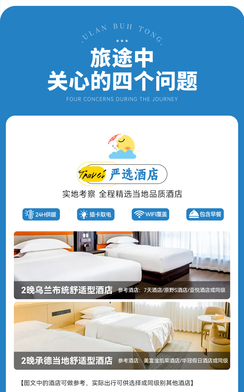3、门票:乌兰布统和塞罕坝冬季不收费,如需收费请自理