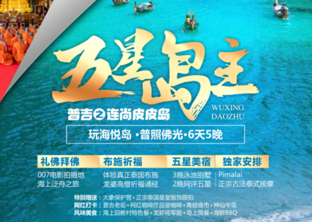 第三天:普吉·独家芭比海豚粉蓝时空号快艇前往PP岛--小PP岛环游--帝王岛+浮潜 (如因天气、潮汐等原因改去帝王岛吃饭,大PP不上岛)