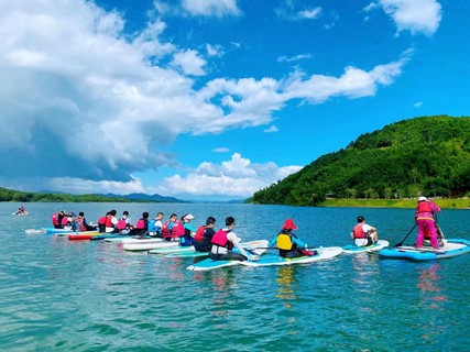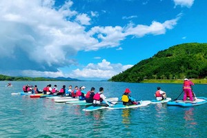 13:30-16:00浆板皮划艇教学,自由玩耍也可组队,可以在这里游泳,非常惬意