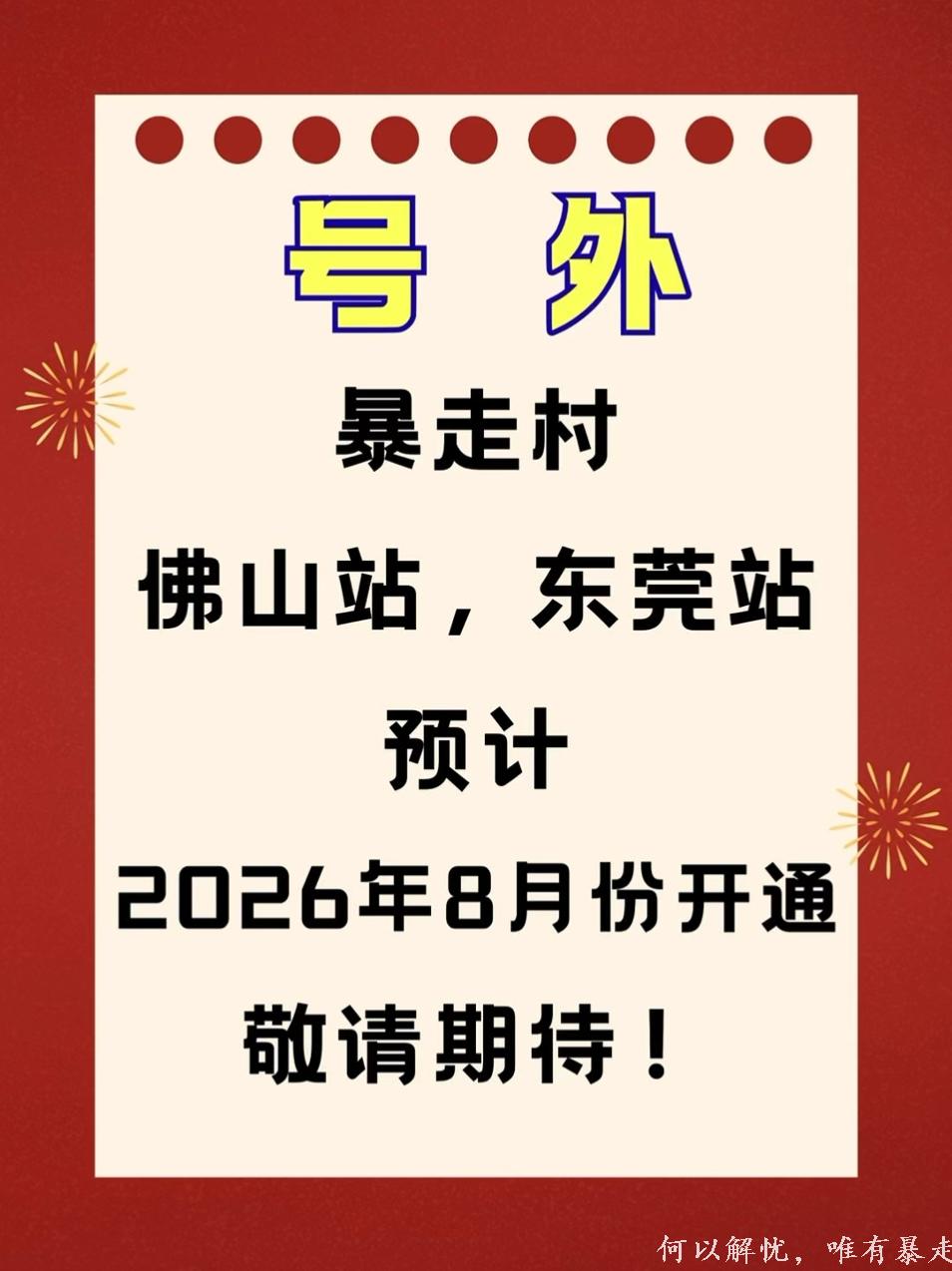喜报!暴走村佛山站,东莞站 预计2026年8月份开通 敬请期持! [复制链接]
