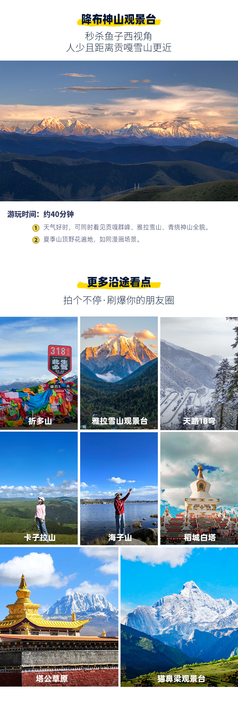 第7天:雅江-降布神山观景台(观贡嘎雪山)-折多山-成都(已消费,所有费用不退。)