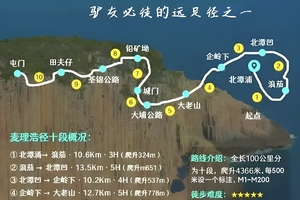 香港麦理浩径,是《美国国家地理》评选出的「全球20佳徒步远足径」之一,也是热爱户外运动的众多港星钟意的徒步目的地,更是徒步圈中备受推崇的人生必徒路线之一。 全程100公里,分为10段,风景最好的在二段中浪茄湾和一段中的破边州!本次活动路线截取其中精华部分二段中的西湾山➕浪茄湾➕蠄蟝石和一段中的万宜水库东坝➕破边洲。让你感受什么才是真正意义上的经典麦径。