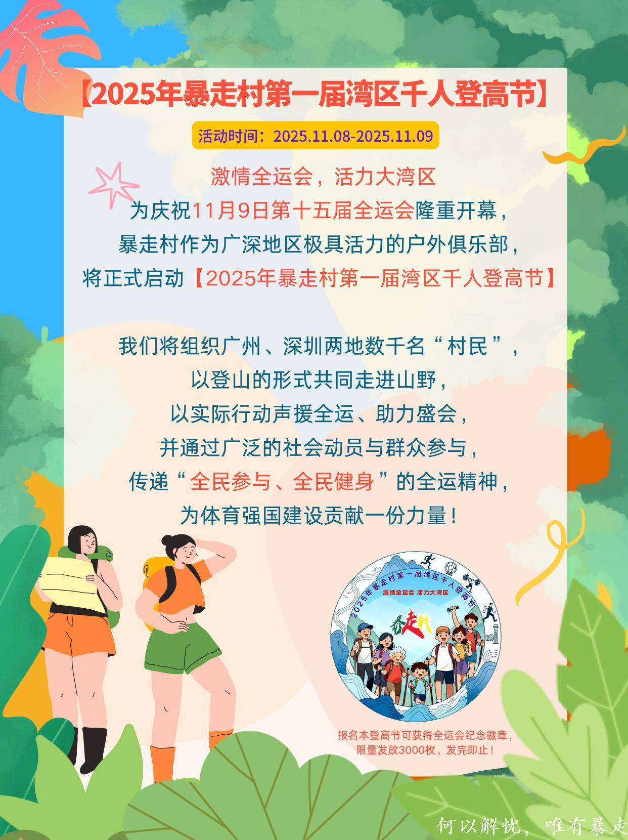 天气变幻莫测,预报准确率低,而活动出行需提前安排。一般而言:小雨阵雨出行,大雨暴雨及以上则取消或延迟。如遇不能出行的天气或者活动有改动,请随时关注活动群通知,最终解释权归暴走村所有。