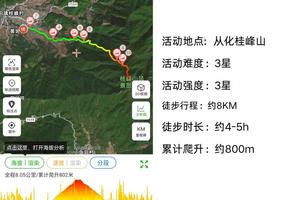 徒步全程约8公里,累计爬升约800米。起点桂峰村,终点桂峰村,一路经过农耕路、机耕路、水泥路、土路野路等乡村道路