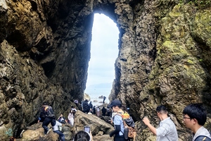 深圳穿鼻岩位于深圳大鹏新区东涌沙滩东侧,是深圳东西涌徒步路线上的一个景点。