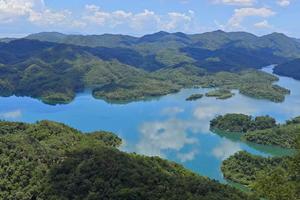 亮点2:狮头山山顶的风景十分秀丽,可以俯瞰到长江水库全景,好似“千岛湖”