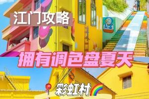 彩虹村位于广东省江门市江海区白水带大道,原为横坑村,经2019-2020年微改造工程后形成彩色建筑群落。全村120余栋民居统一采用环保原料粉刷成黄、橙、蓝、绿等七种色系,形成具油画质感的视觉景观。该村与江门儿童公园形成联动开发项目,配套建设了图书馆服务点、文化沙龙区等文旅设施,现为融合城市休闲与艺术展示的免费开放景区.