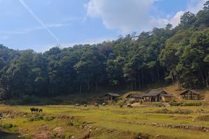 12:00开始徒步木鱼洞原始山林徒步路线,这里还保留着很好的山林,彷佛进入到了原始森林,有草原 溪流古老的房子 幸运还能遇见可爱的神兽哦