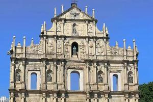 游览具有标志性地标建筑的【圣保罗教堂遗迹】,列入世界遗产的中西合璧的石壁在全世界的是独一无二的天主教教堂:【大三巴牌坊]:是最具代表性的"澳门八景”之一,位于炮台山下,左临澳门博物馆和大炮台名胜,为天主之母教堂(即圣保禄教堂)的前壁遗址,曾浴火重生。建筑糅合了欧洲文艺复兴时期与东方建筑的风格而成,体现出东西艺术的交融,雕刻精细,巍峨壮观。