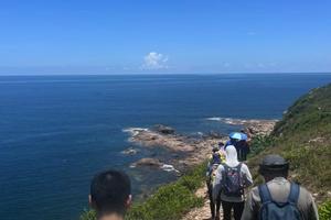 双月湾大星山半环路线徒步全程约10公里,用时约6小时,难度中等偏难。部分路段有悬崖,不适合小孩参加