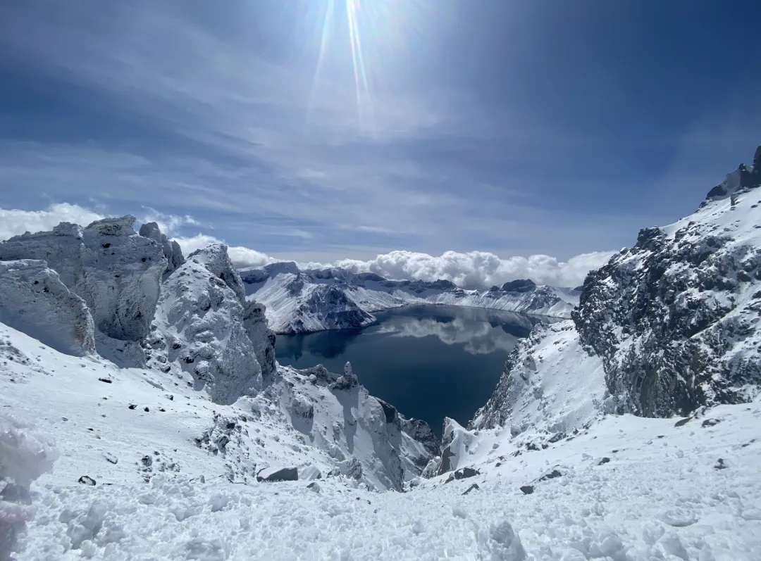 09:30 抵达倒站口,如果天气好大家可以换乘倒站车20分钟抵达天池主峰停车场,爬上5分钟到山顶,俯瞰美丽的天池,自由摄影30分钟。