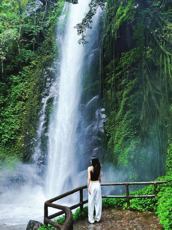 接着游玩【莫里热带雨林】,天然森林氧吧,我们在这里轻徒步观景,多种热带和亚热带植物,根盘如网的树包石,循跌水声前行至峡谷尽头,眼界也忽然开阔,并见到一条约60米高的瀑布,这就是【莫里瀑布】。