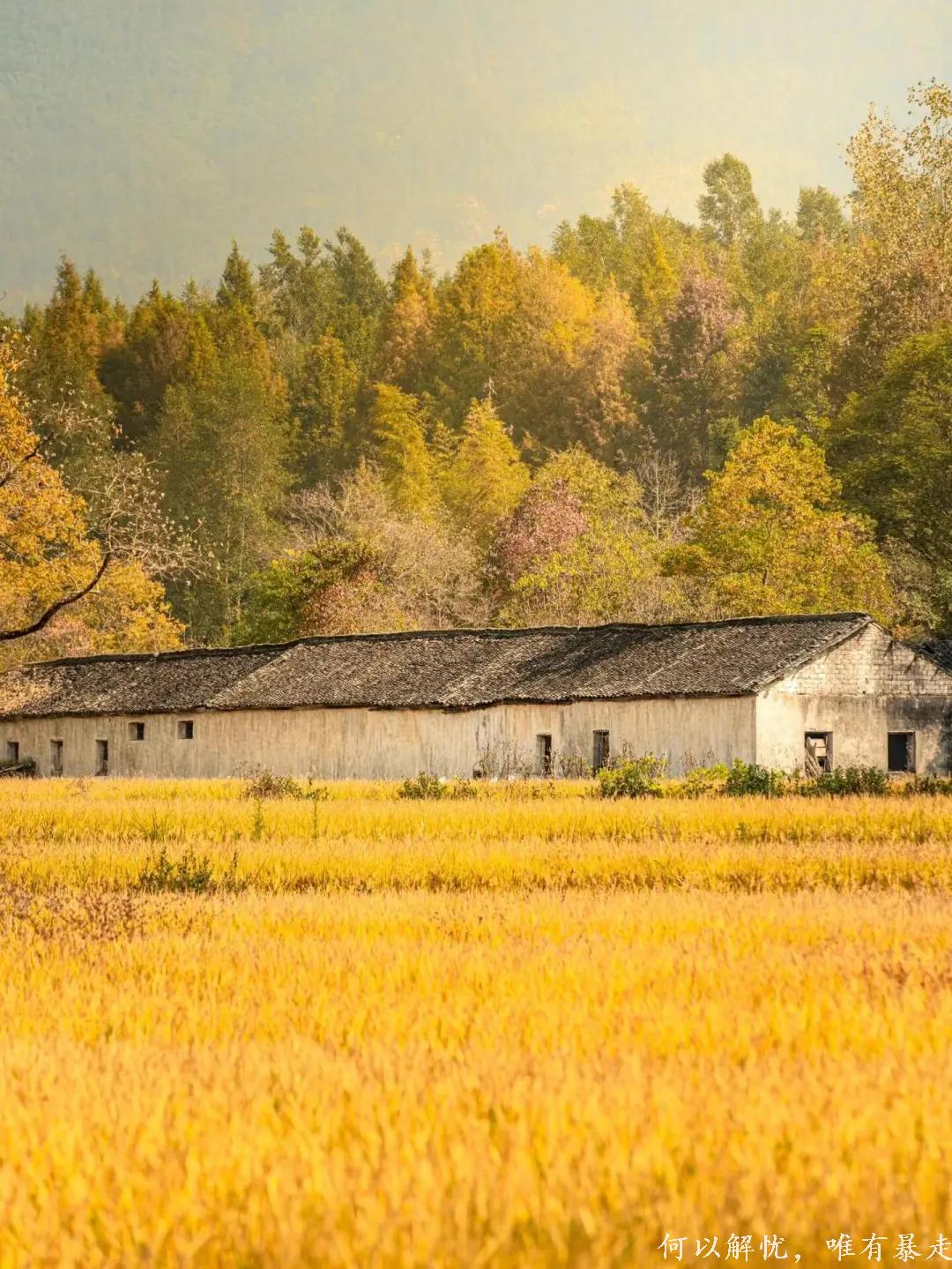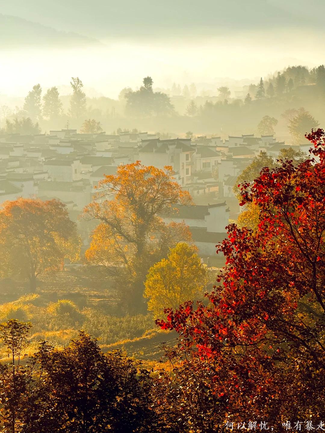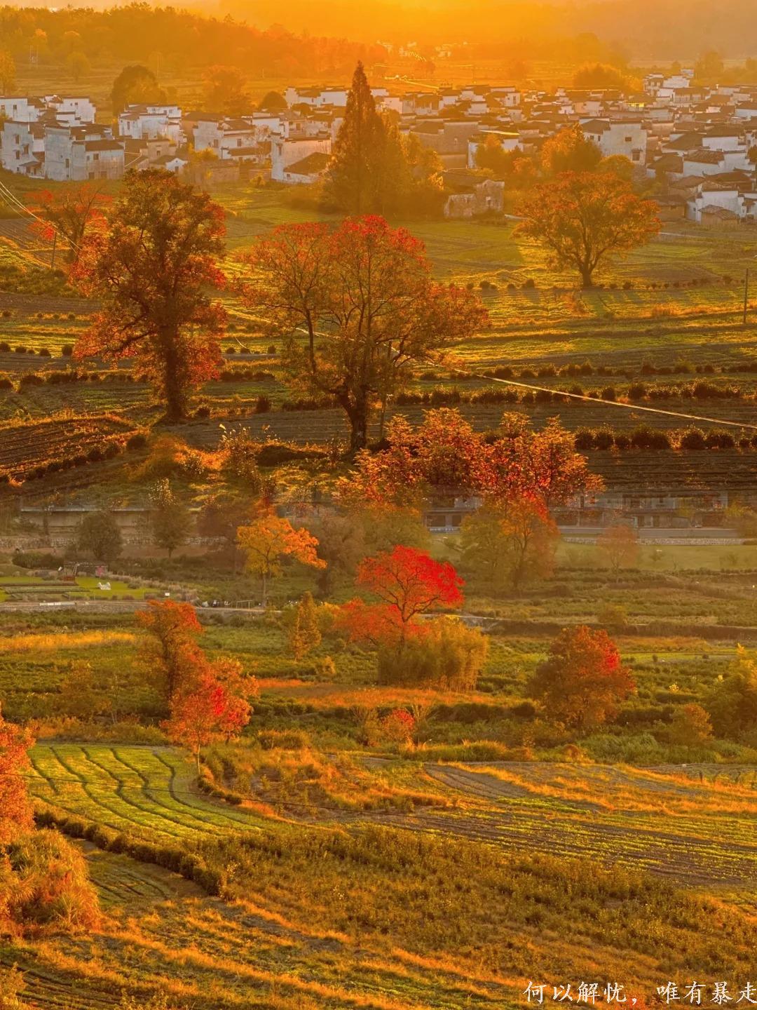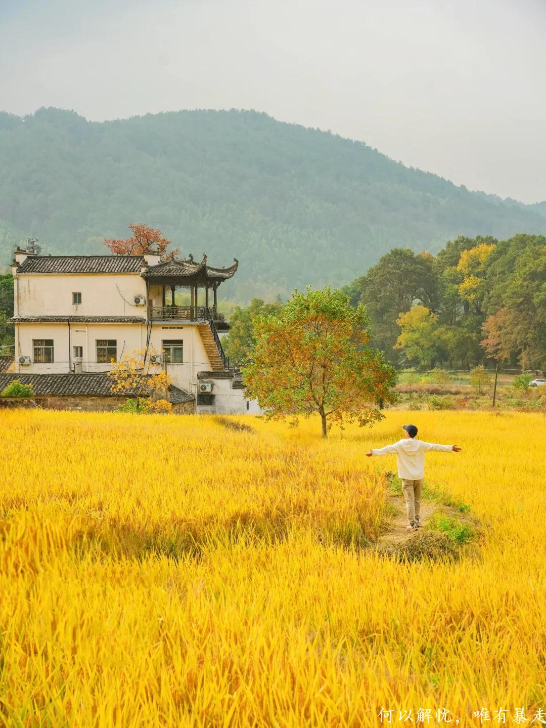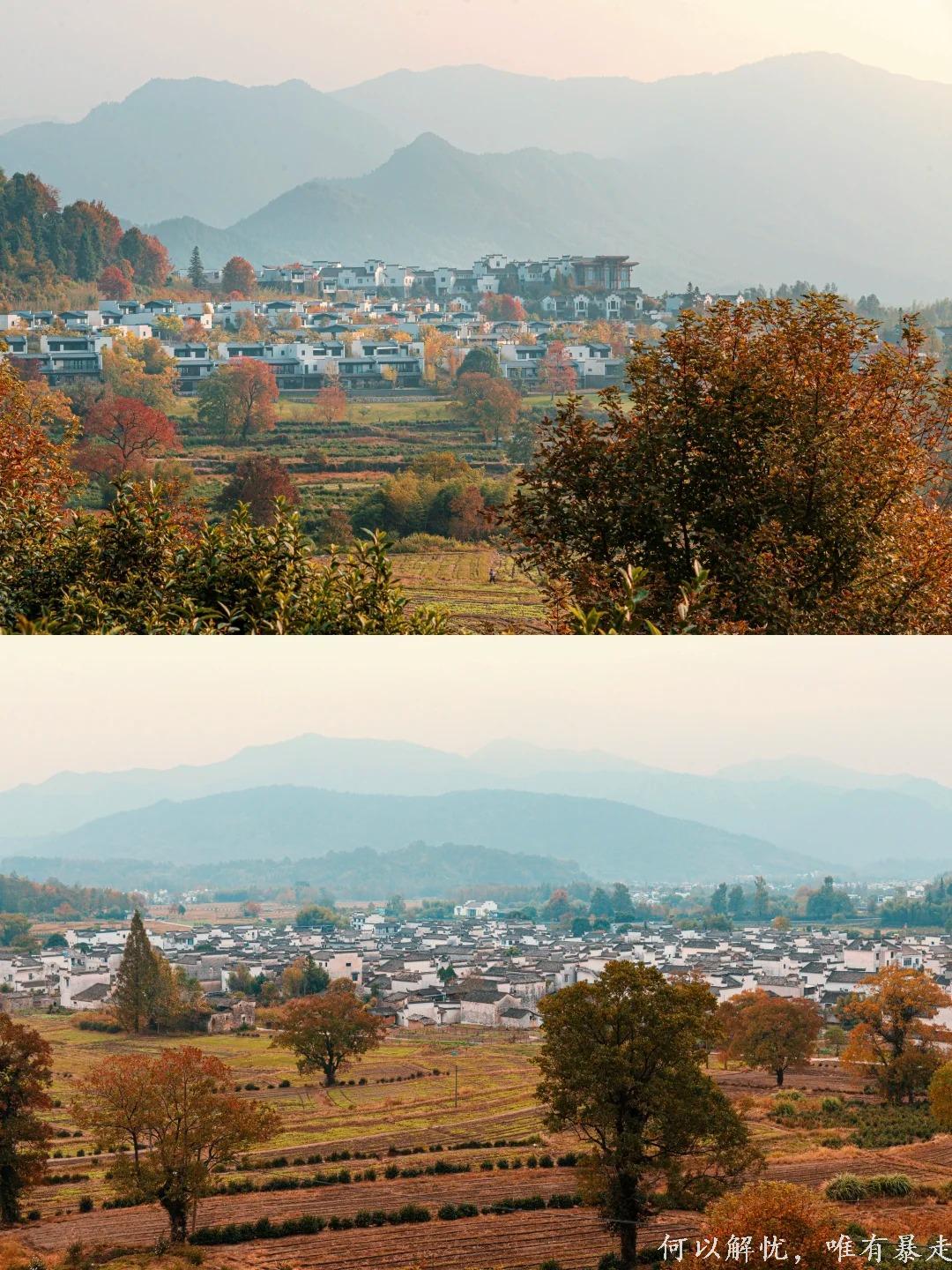 塔川是黟县秋色的精髓所在,红枫林顺着稻田铺向远方,