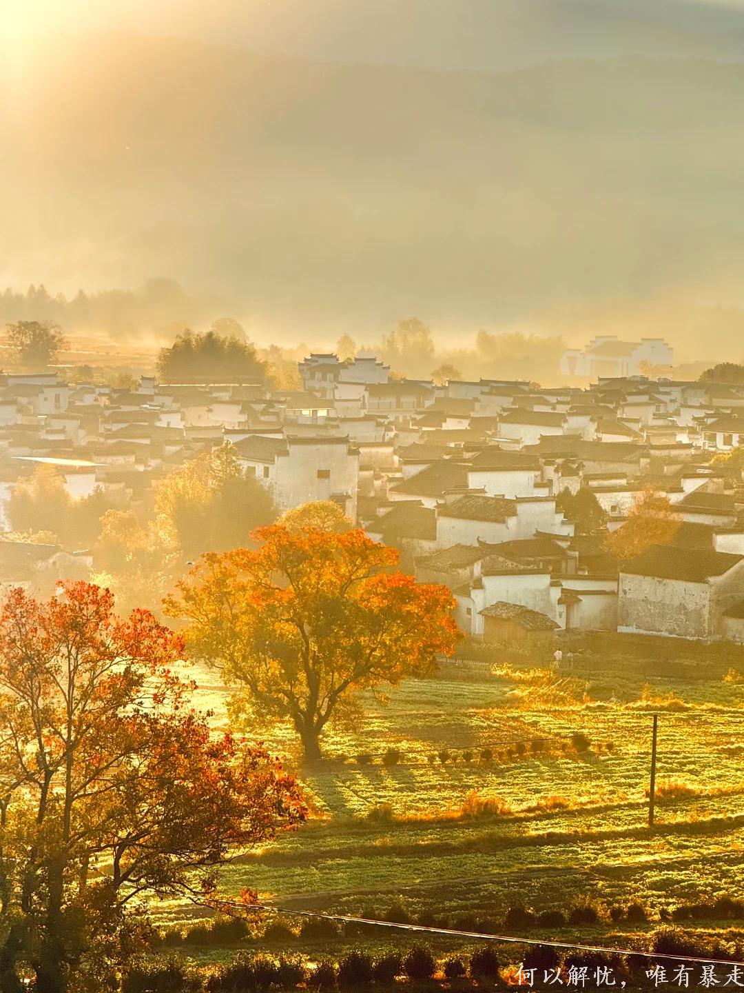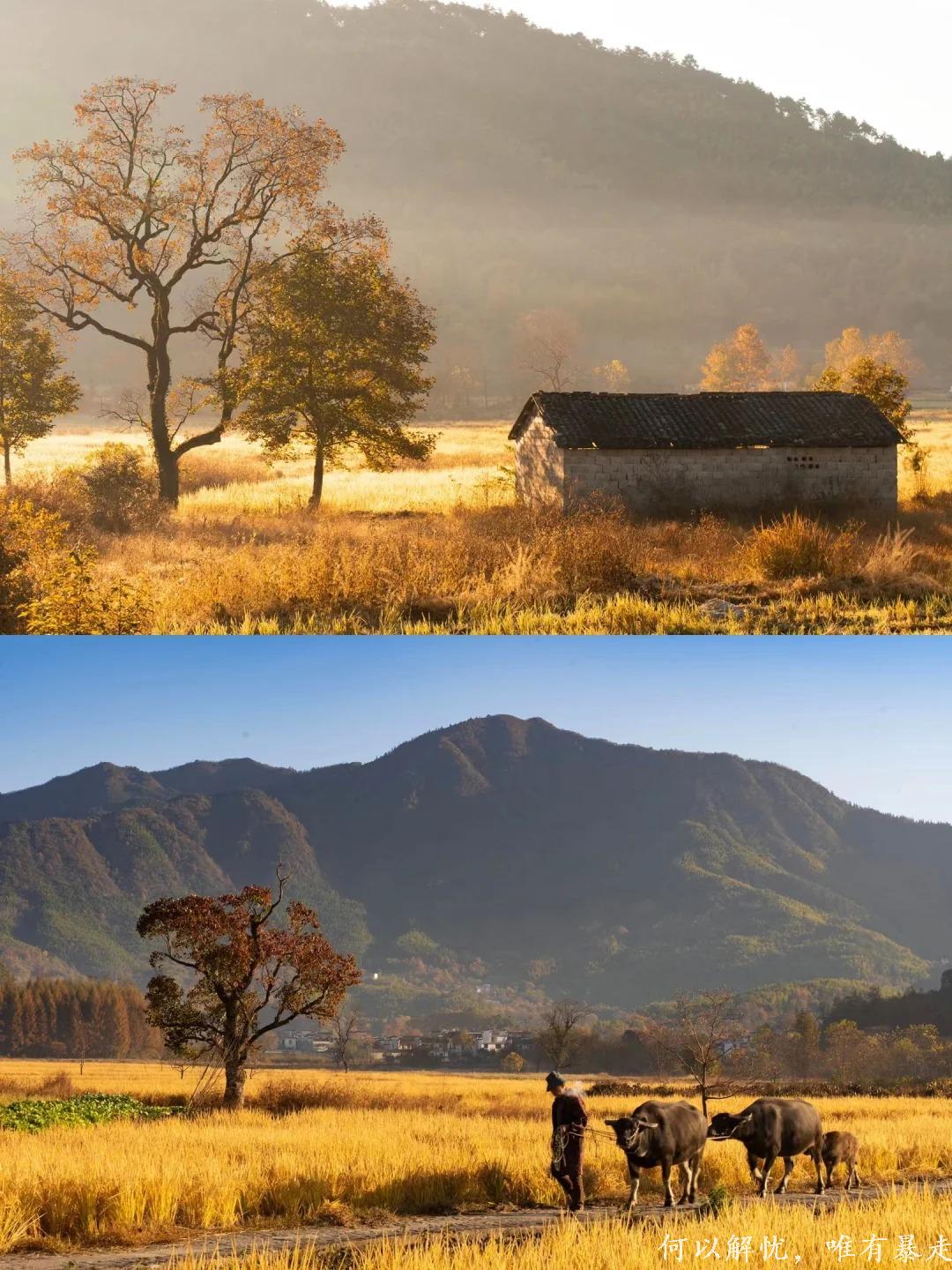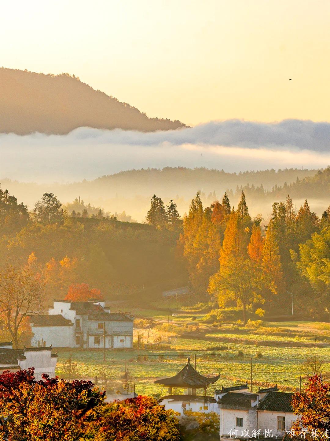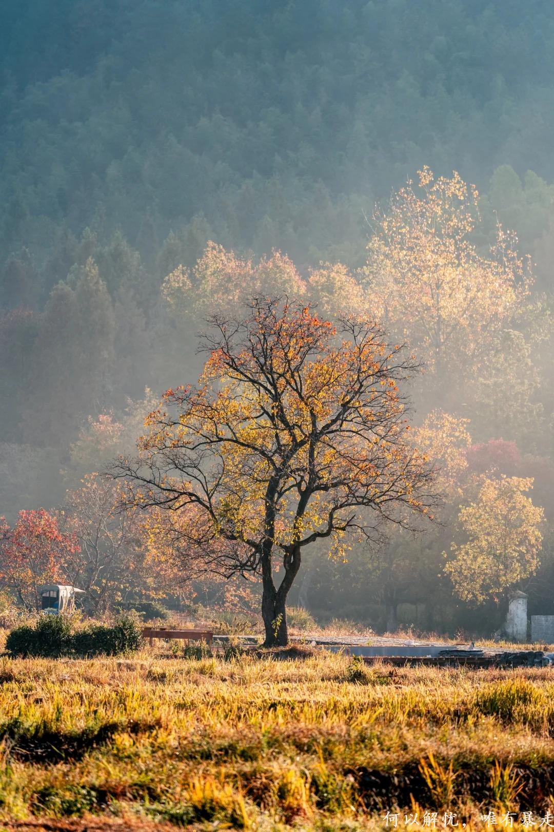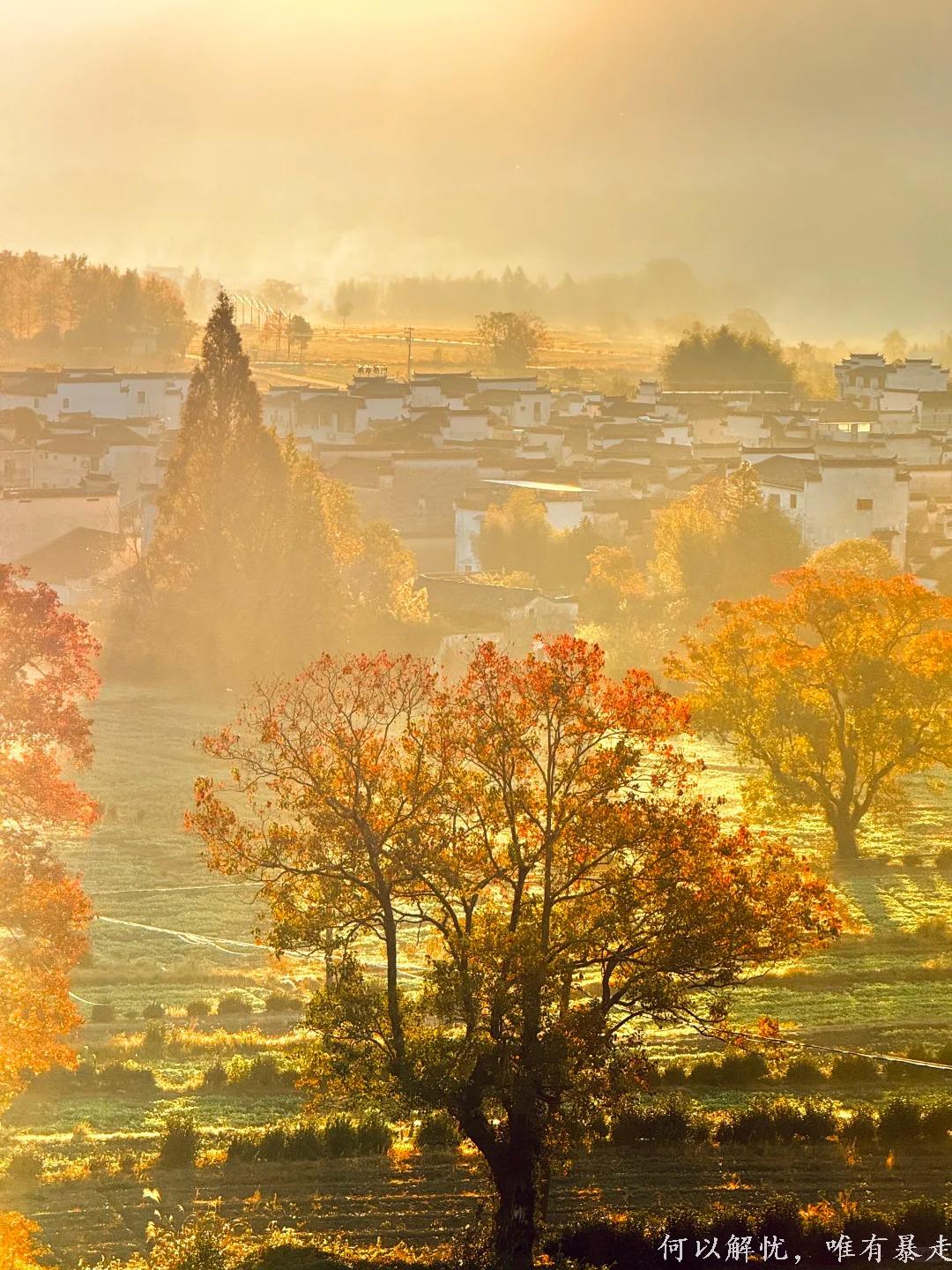 塔川是黟县秋色的精髓所在,红枫林顺着稻田铺向远方,
