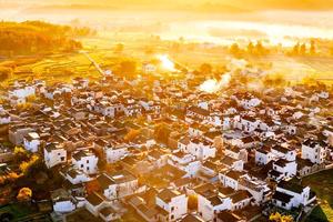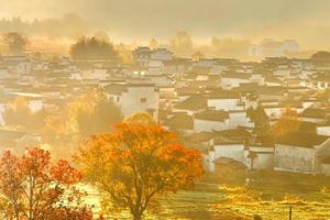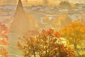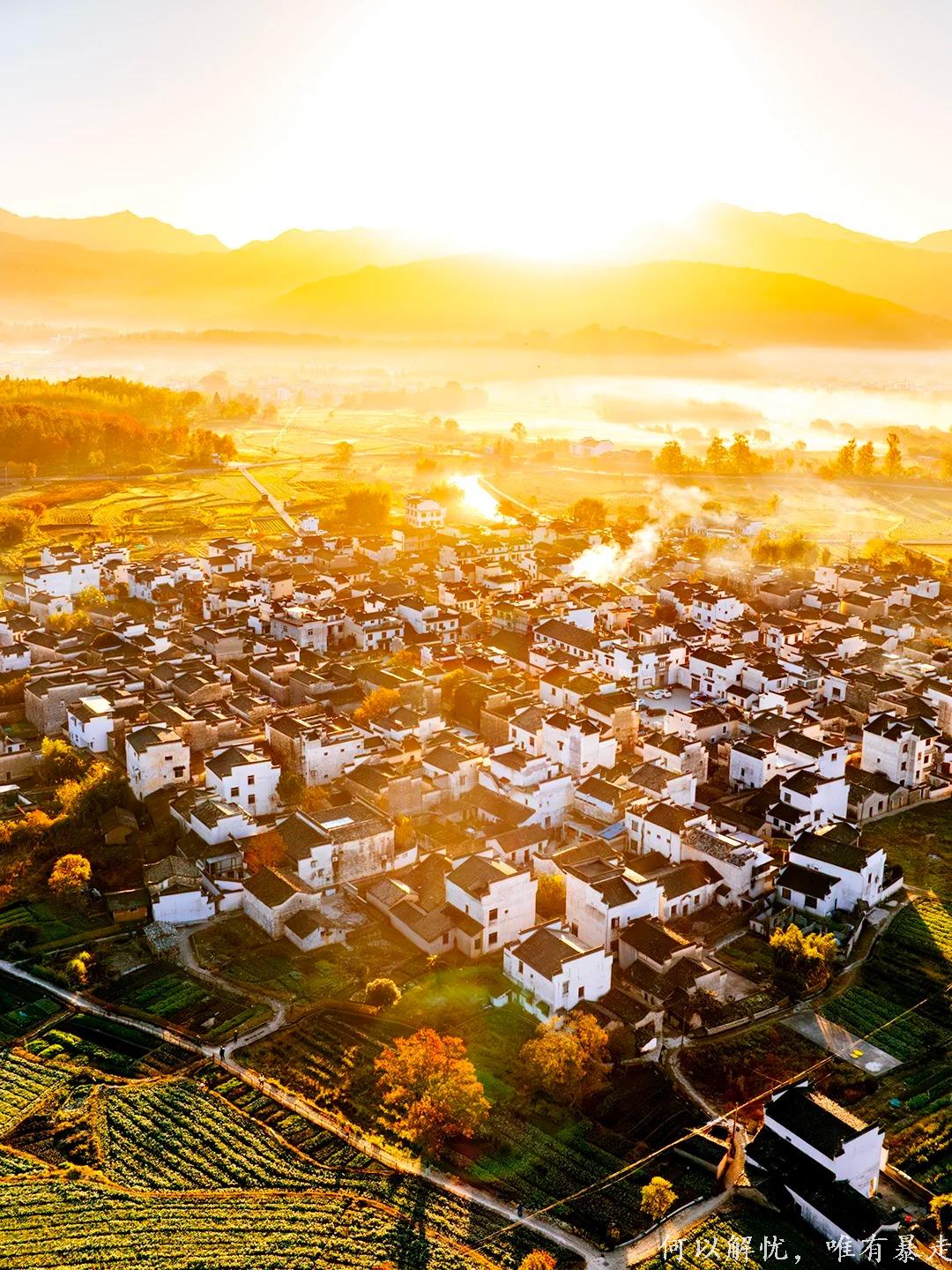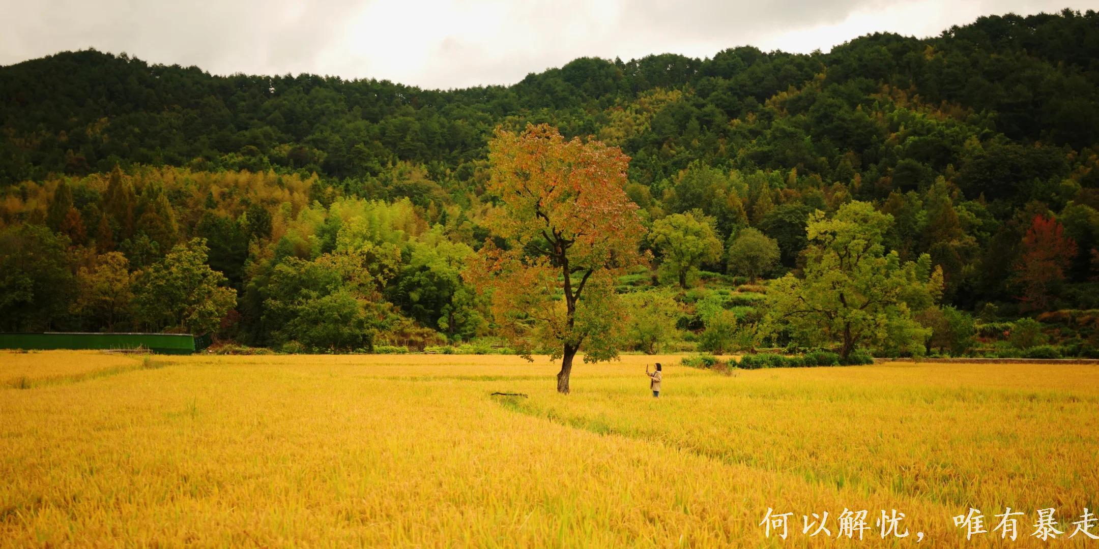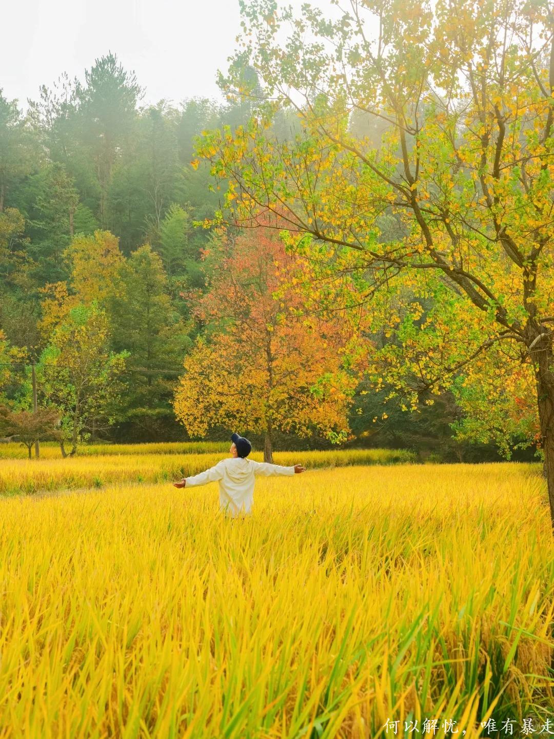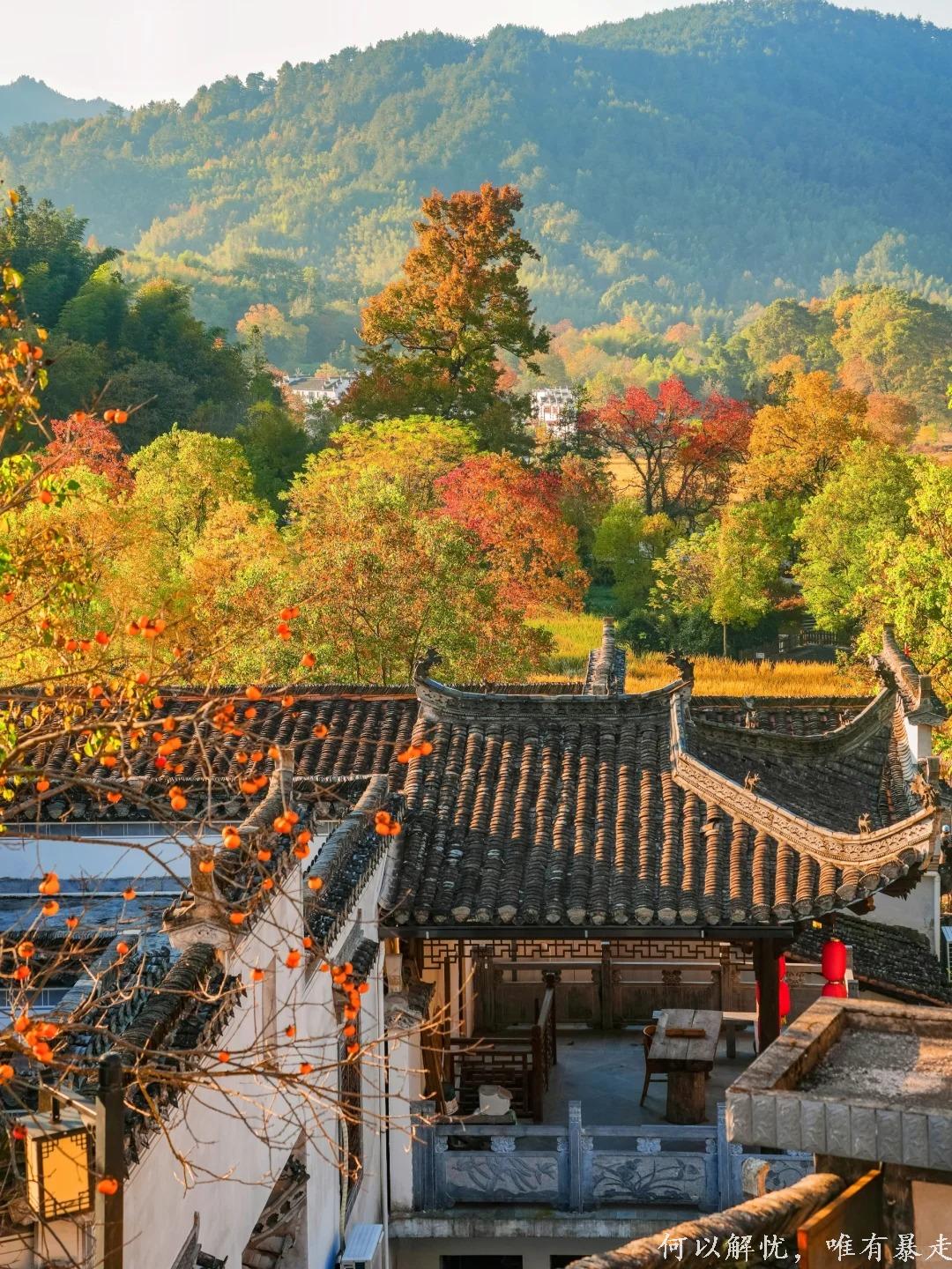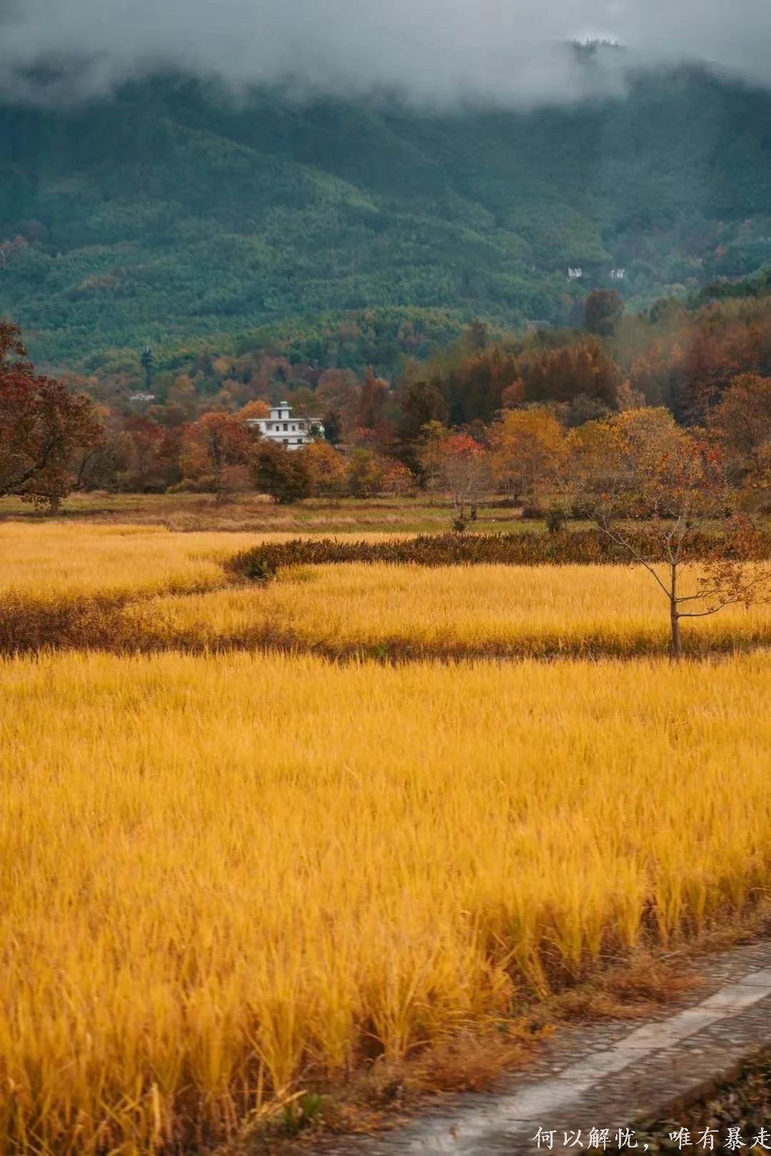 塔川是黟县秋色的精髓所在,红枫林顺着稻田铺向远方,