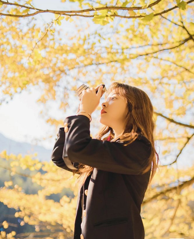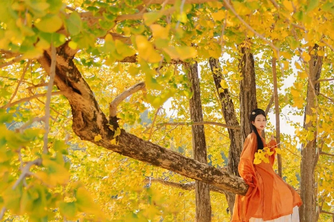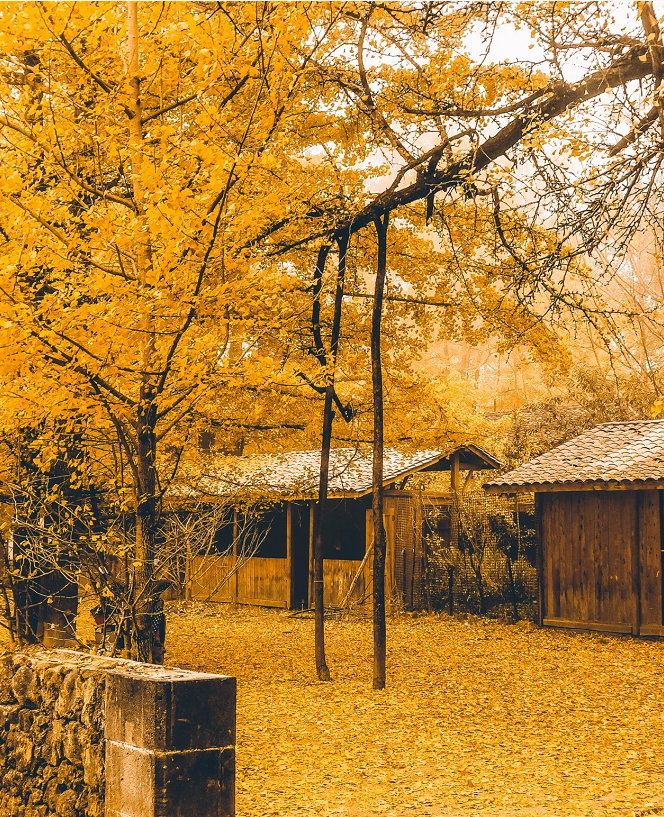 有人说,一个把黄色都用尽了的小村庄,是个浪漫的地方!能想到的最浪漫的事,就是坐在这里的摇椅上,和你看着漫天飞舞的金黄,慢慢地摇;想做的最浪漫的事之一,就是被你牵着手,旁若无人地走在金色堆砌的魔毯上,留下只属于我们的“银杏树之恋”!