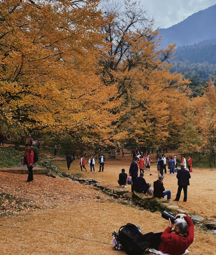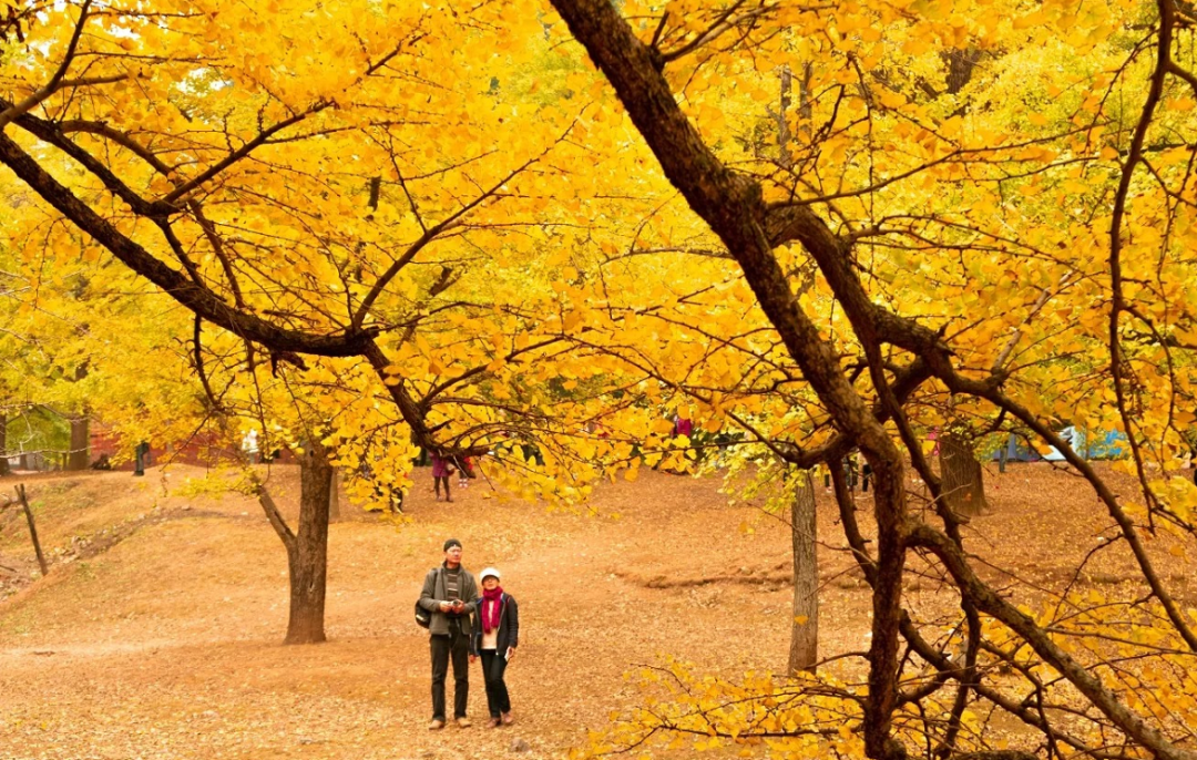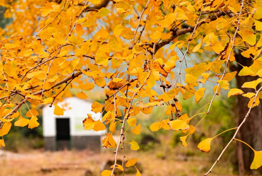 或挂在枝头或飘落地面,漫山遍野尽披“黄金甲”。