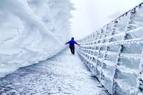 以奇特的云海和冰挂景观不断在朋友圈刷屏、圈粉