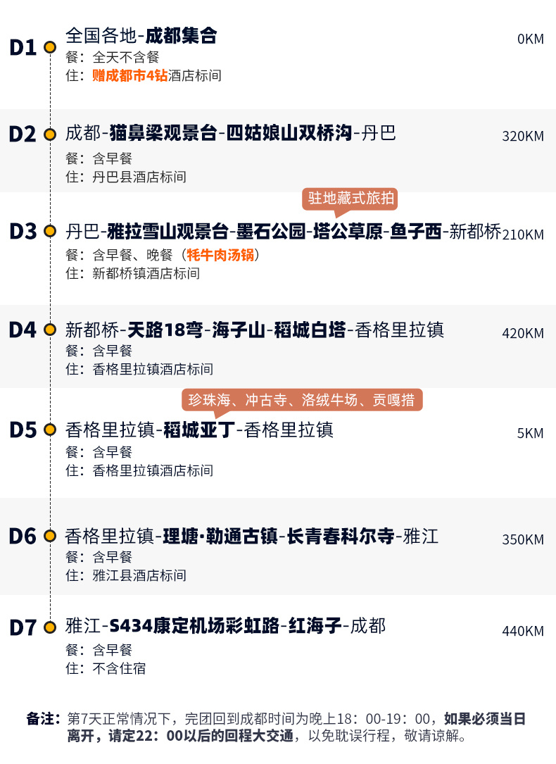 (2)大美稻亚沿途用餐以川菜为主,但因为路况原因,很多时间不能正点用餐,请自备干粮。