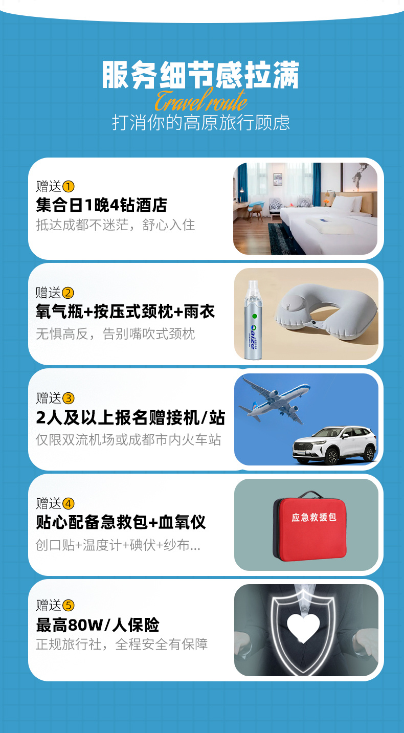 6、2人及以上报名赠双流机场接机/成都市内火车站接站(天府机场接机需自理费用)。