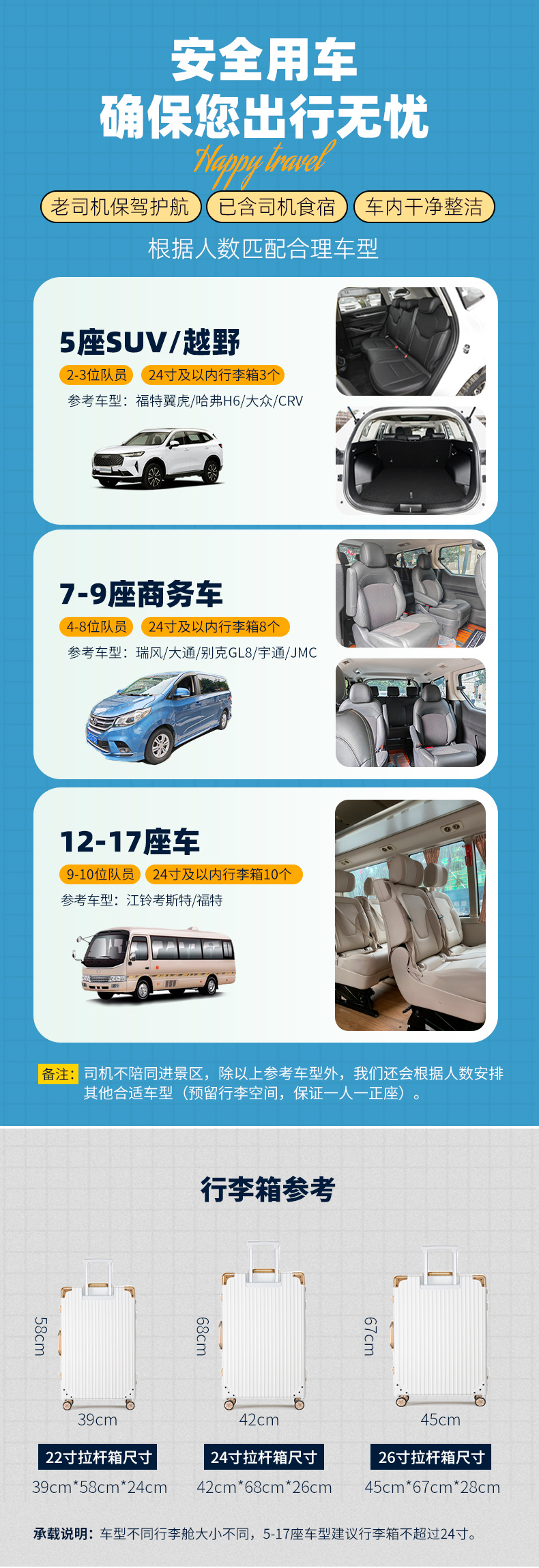 (3)如遇个别酒店,没有电梯和提行李服务,敬请自理;