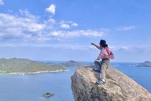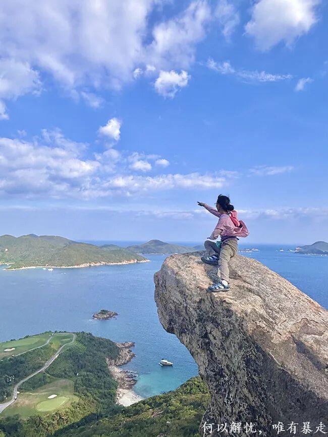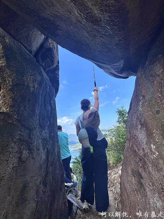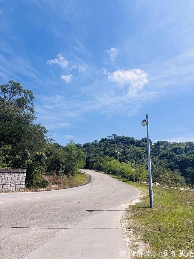 亮点2:这条线人迹罕至,一路爬山总共就遇到两拨人,但徒步体验绝佳,路上会穿越很多野草丛生小路、竹林、过海滩、走栈道,盼砂石体验非常丰富,有山有海,山顶能看到很出图的斜炮石,大岭以及环海的高尔夫球场能看到一群大佬在打球,躺在山上的巨石上俯瞰海岛,置身其中完全远离城市喧嚣。