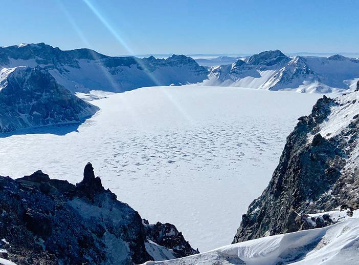 11:00 抵达倒站口,如果天气好大家可以换乘倒站车20分钟抵达天池主峰停车场,爬上5分钟到山顶,俯瞰美丽的天池,自由摄影30分钟。