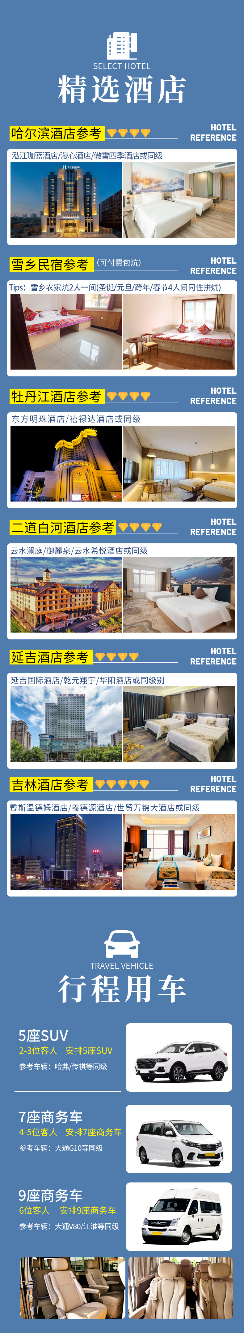 1、雪乡因条件有限不提供一次性洗漱用品和吹风机,请提前自备。