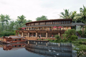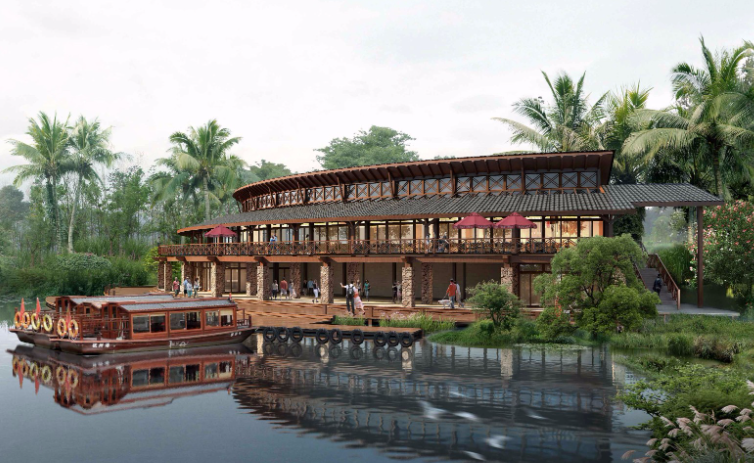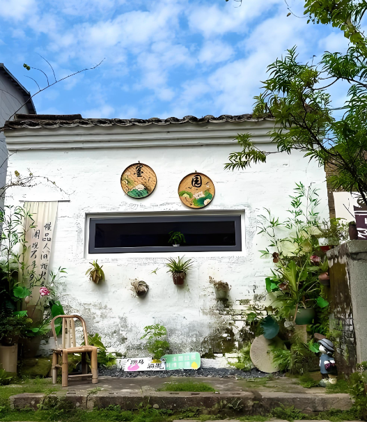 墨园村是东江边一个典型的客家古村落,保留着10多栋300多间古建筑。 墨园村不仅依水而建,村内也是小桥流水。广府、客家文化在此交融,形成丰富的建筑文化。墨园村的古建筑、民居主要有祠堂、府第、庭院、水井以及其他特殊建筑等,建筑保存基本完好。锅耳墙、青砖墙、硬山顶、龙船脊、碌筒瓦、绿琉璃瓦当等造型精美绝伦,无不体现着造物者的审美。